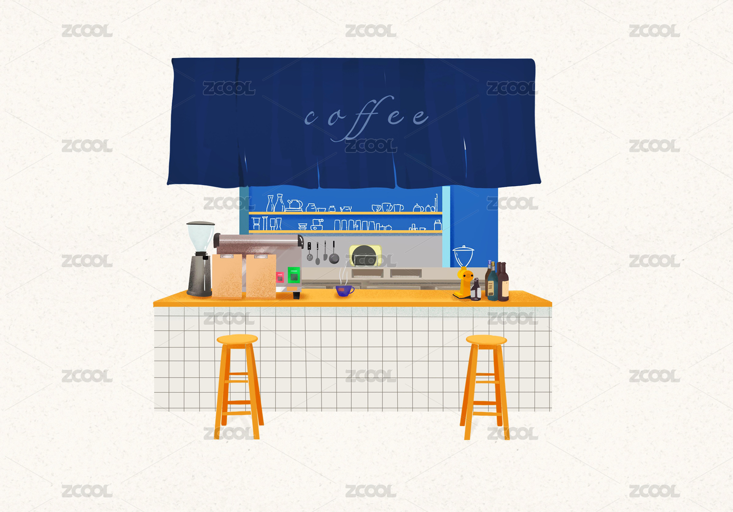 手繪日系咖啡店吧臺
