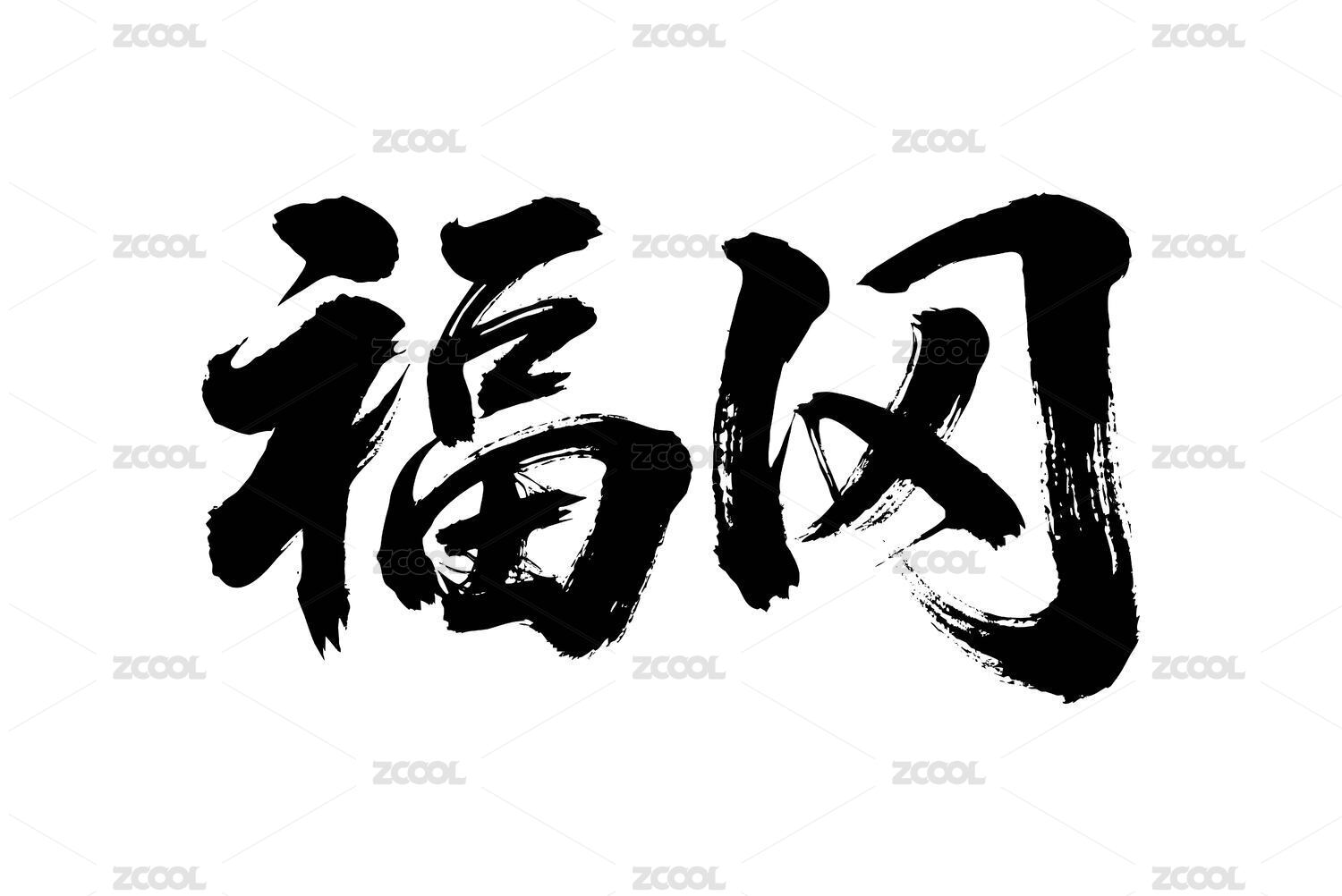 日本城市福岡中文毛筆手寫矢量字形