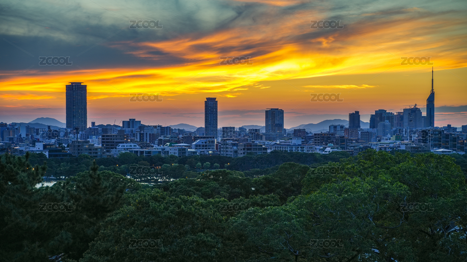 日本福岡城市天際線