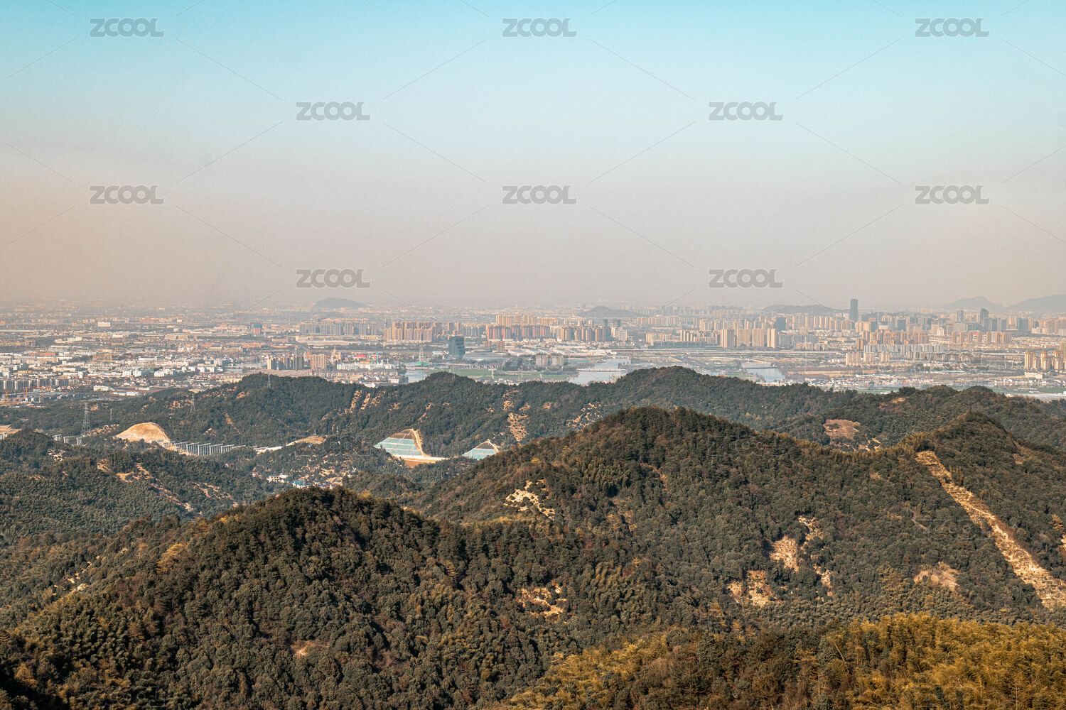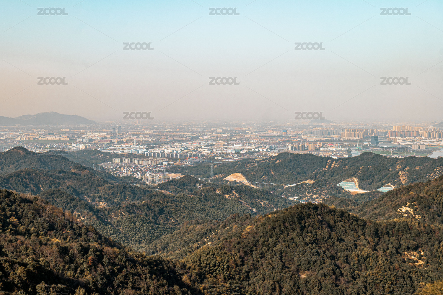 紹興越城區(qū)城市風光和會稽山上的兜率天宮