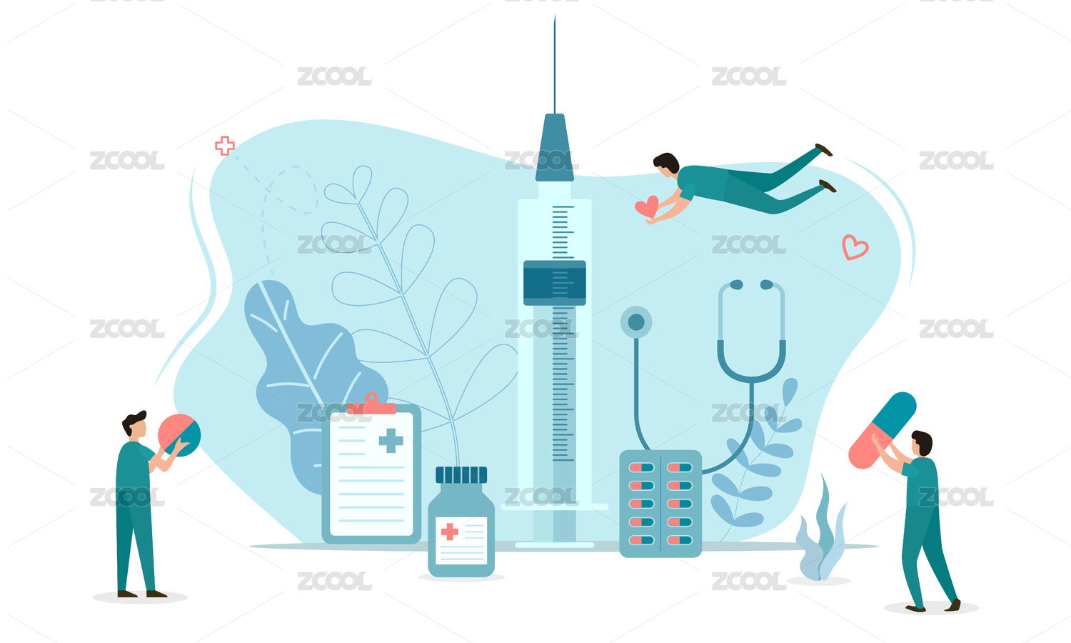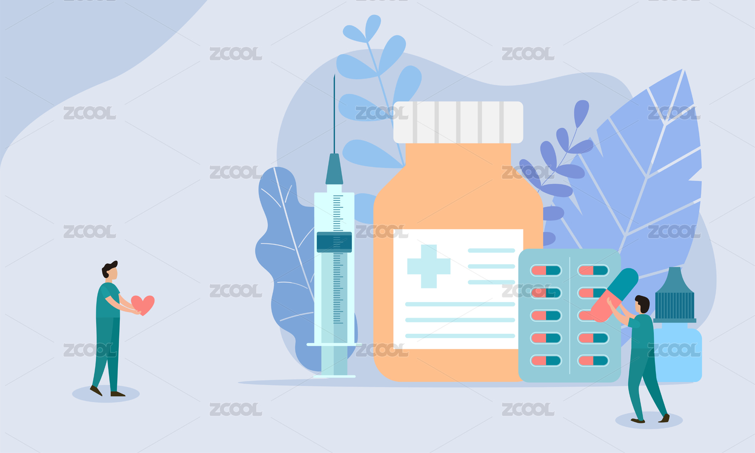 新型肺炎治療的插畫,醫(yī)療圖標(biāo)設(shè)計