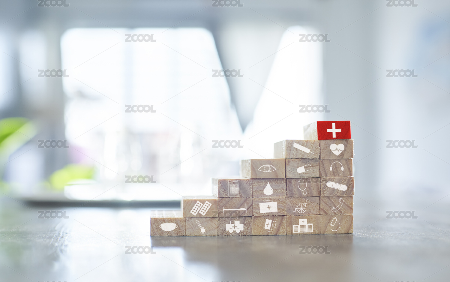 積木醫(yī)療圖標(biāo),健康保險概念