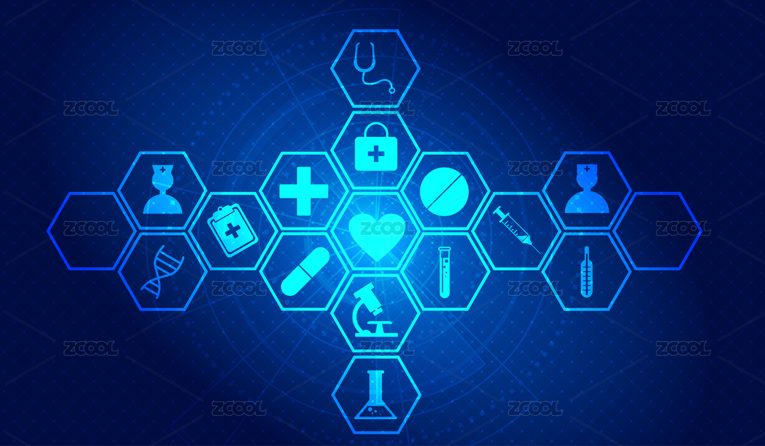 醫(yī)療圖標(biāo)模式,現(xiàn)代醫(yī)療技術(shù)創(chuàng)新概念矢量背景