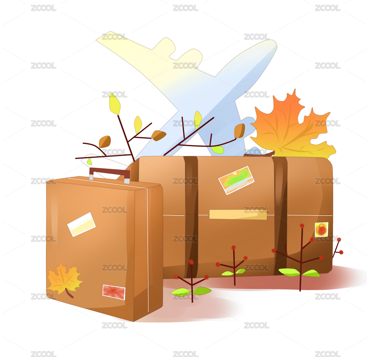卡通手繪秋季旅游旅行箱插畫