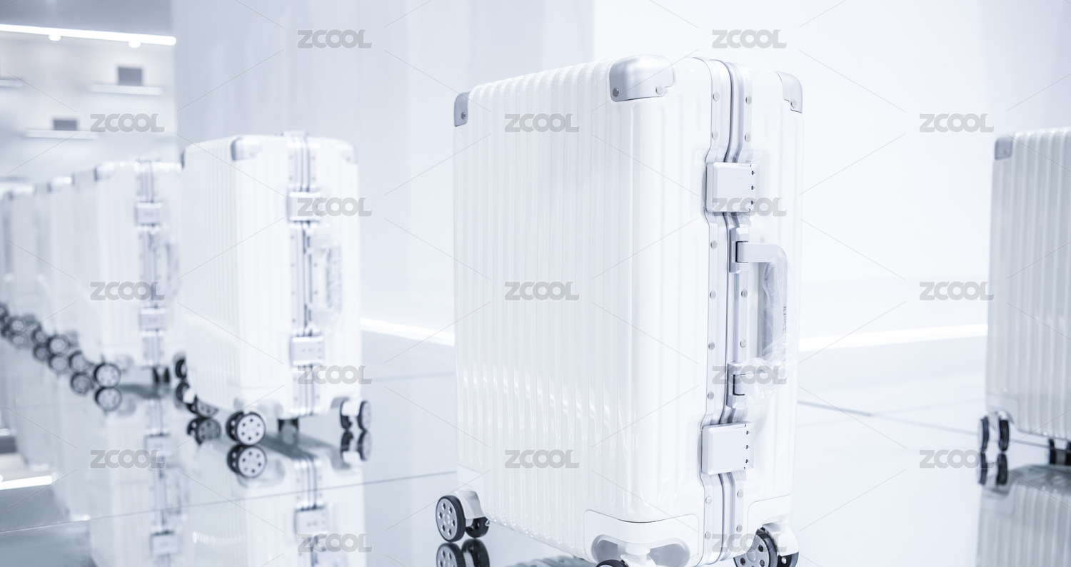一排時尚白色旅行箱