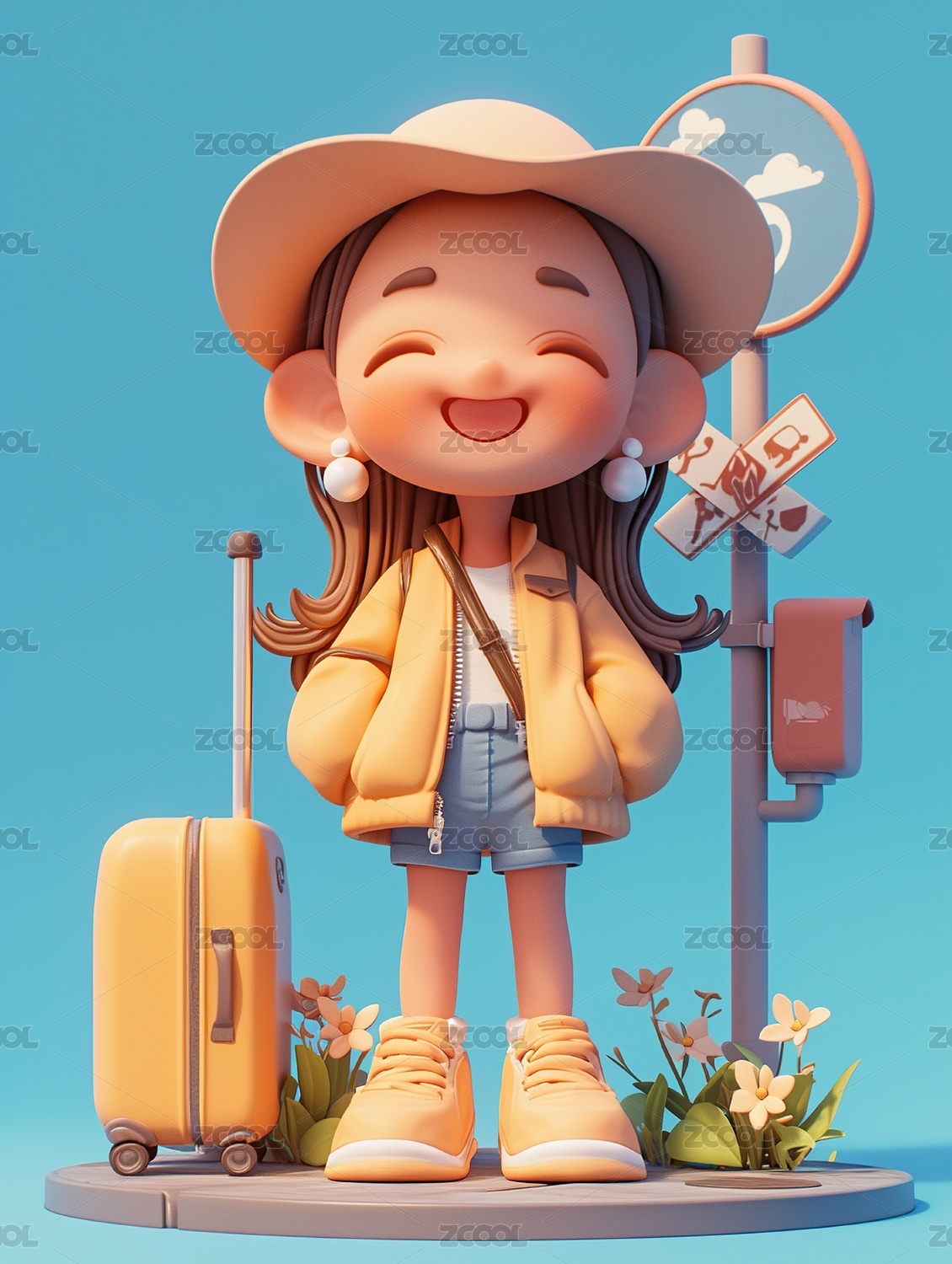 帶著旅行箱的女孩
