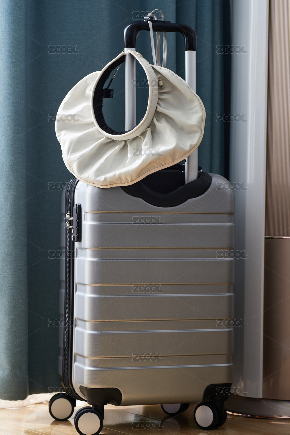 銀色登機旅行箱和帽檐可調(diào)女式遮陽帽