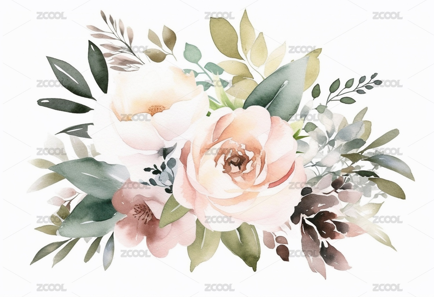 情人節(jié)母親節(jié)水彩鮮花唯美花束美麗包裝素材