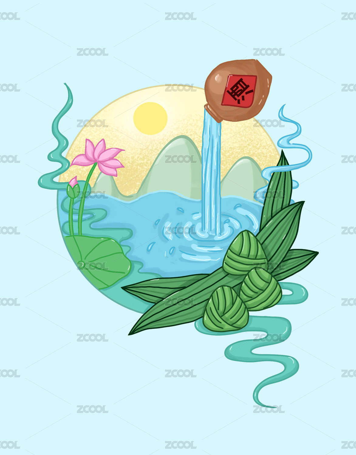 端午節(jié)主題創(chuàng)意插畫 包裝素材粽子美酒荷花