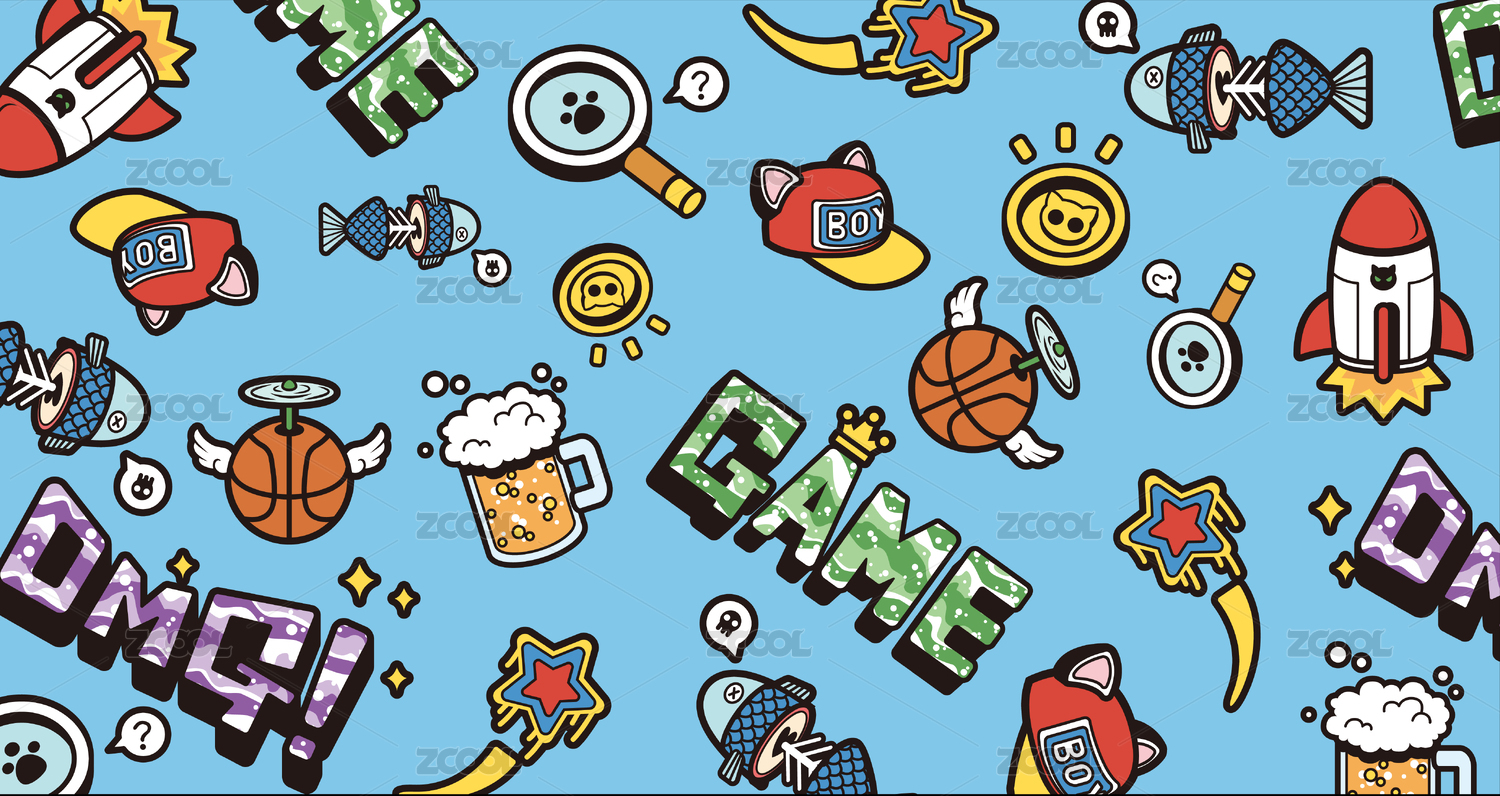 卡哇伊平鋪-卡通圖案拼貼-包裝延展素材