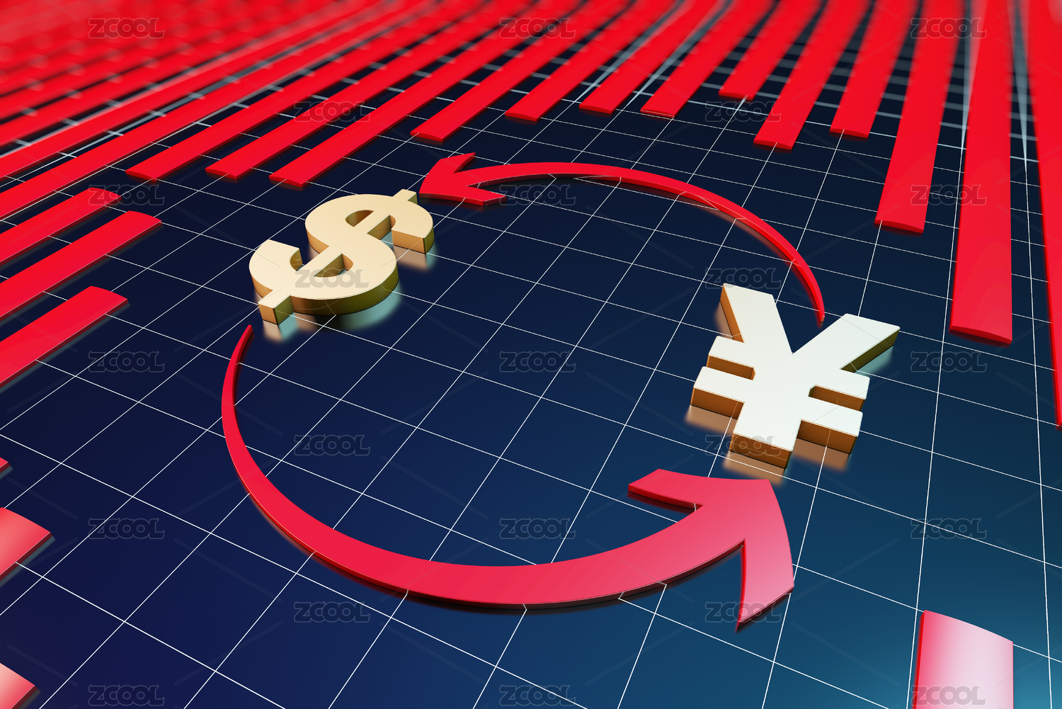 美元人民幣符號與環(huán)形箭頭,交換與兌換