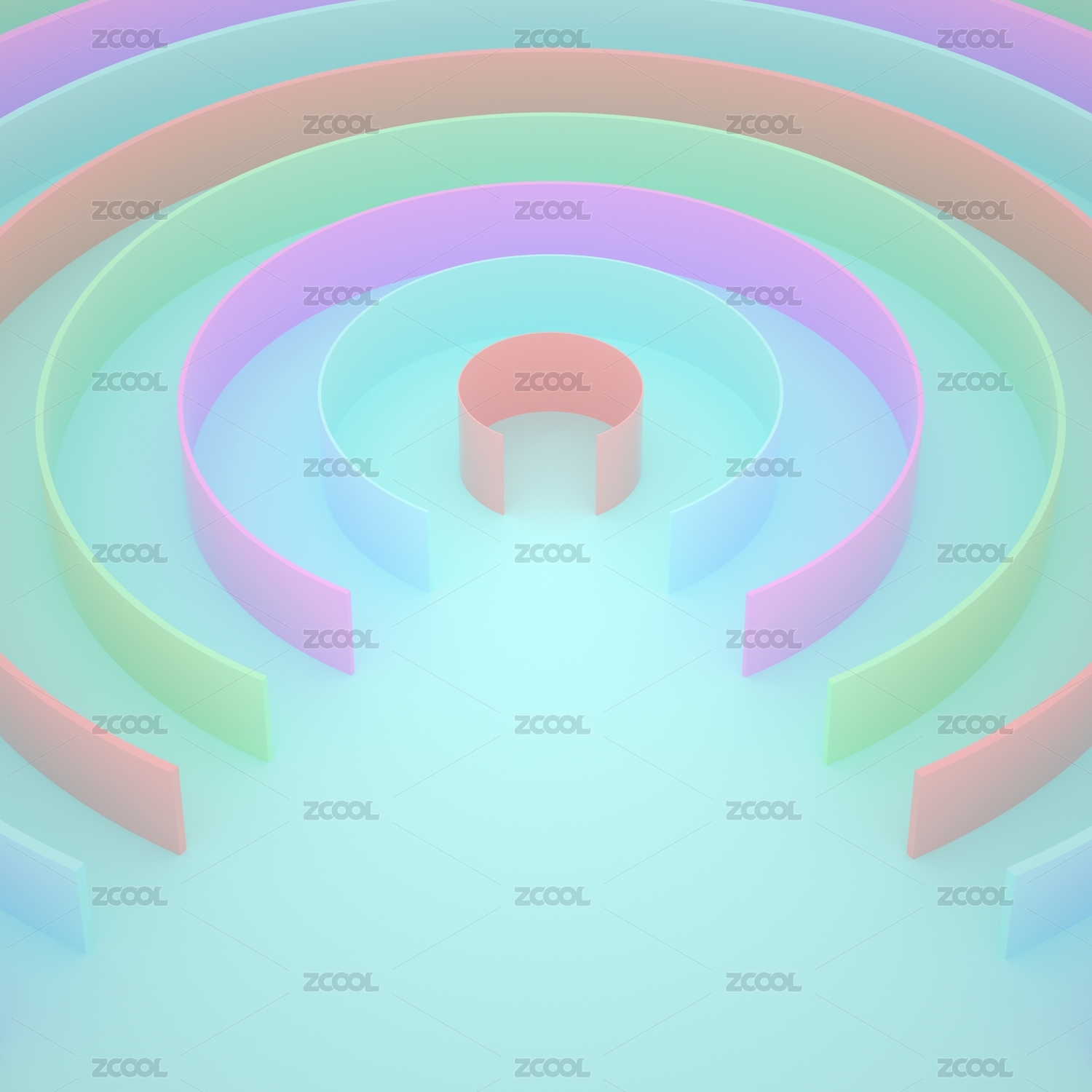 3D柔和彩色重復(fù)開口半圓環(huán)形背景