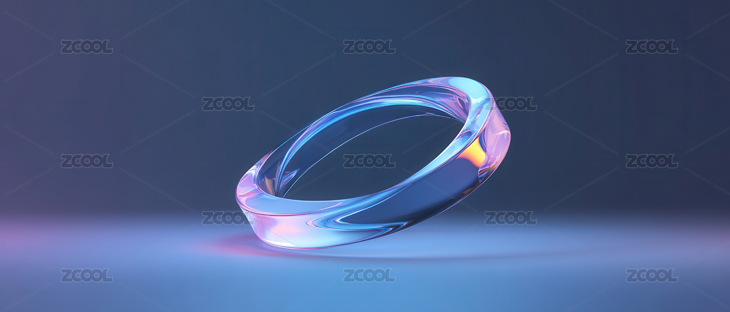 透明環(huán)形物體在藍(lán)色背景下的光影效果