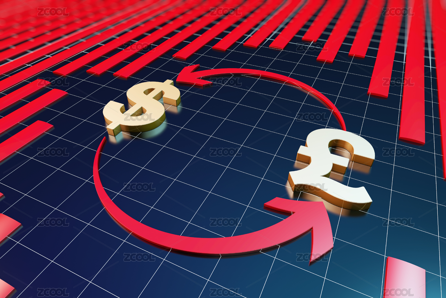 美元英鎊符號與環(huán)形箭頭,交換與兌換