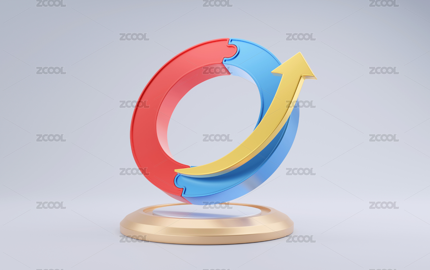 3D紅藍(lán)色拼接互補(bǔ)圓環(huán)與向上箭頭金融素材