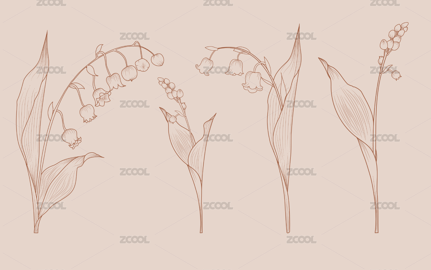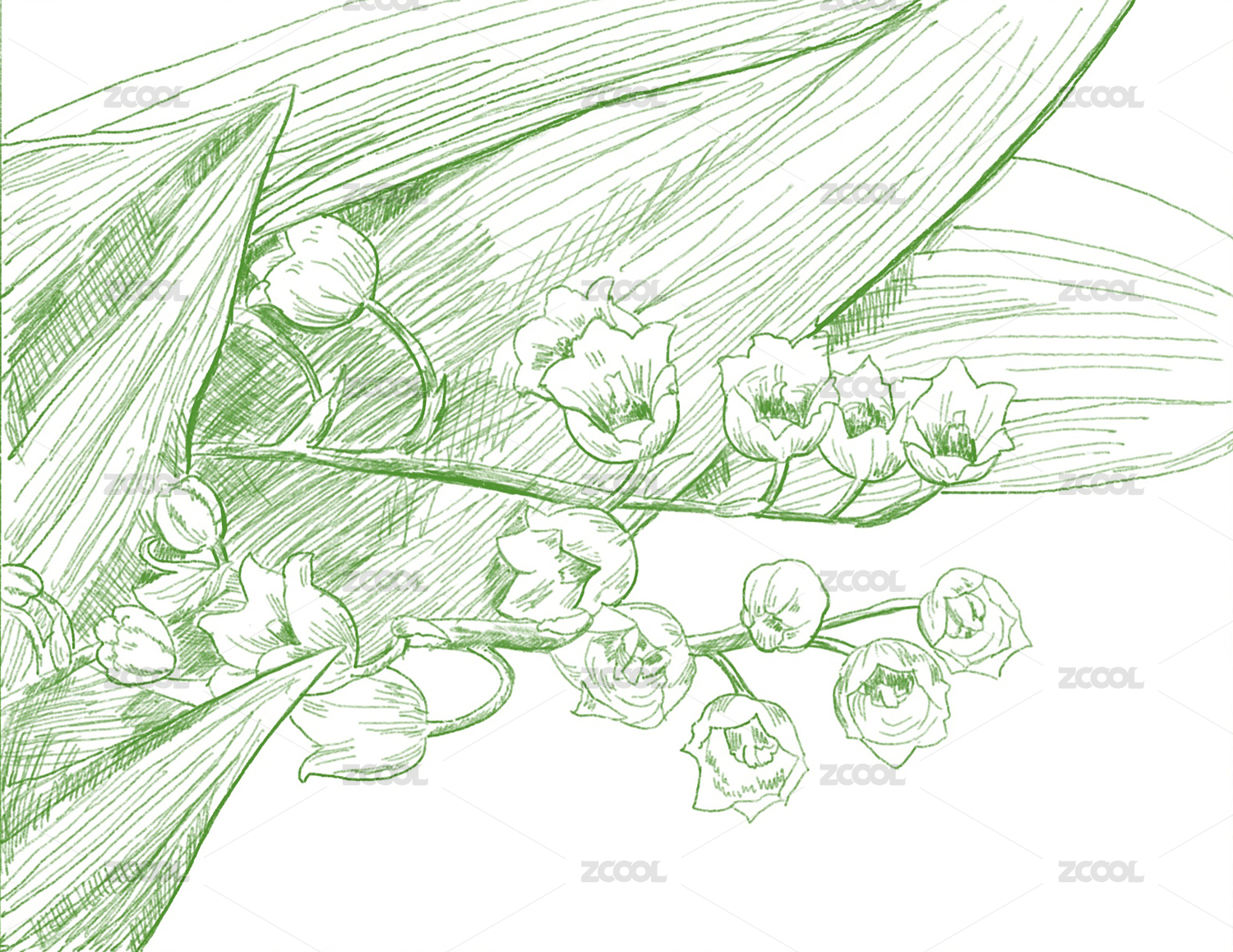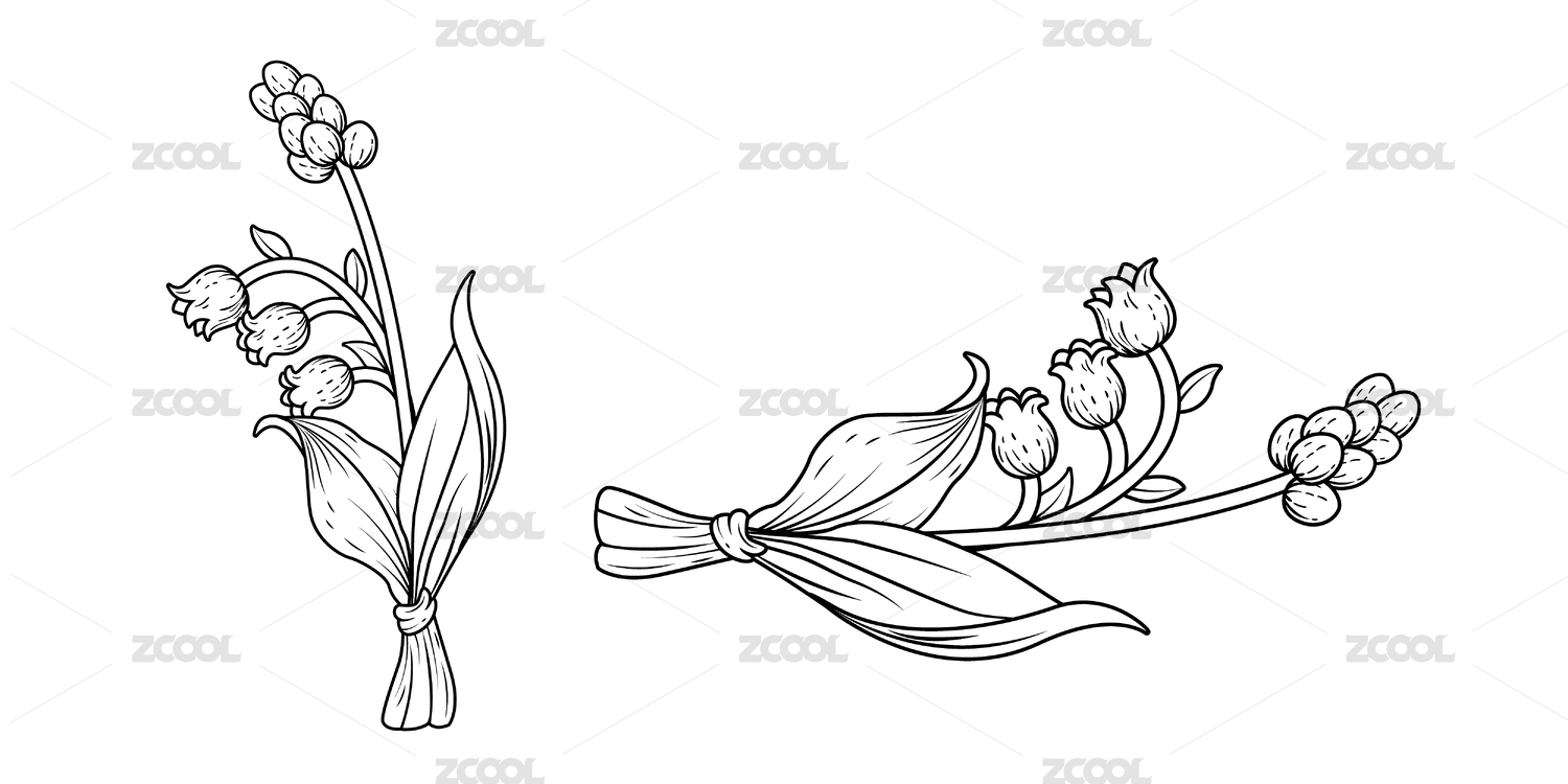 鈴蘭花手繪線稿銅版畫鋼筆畫植物花卉圖案