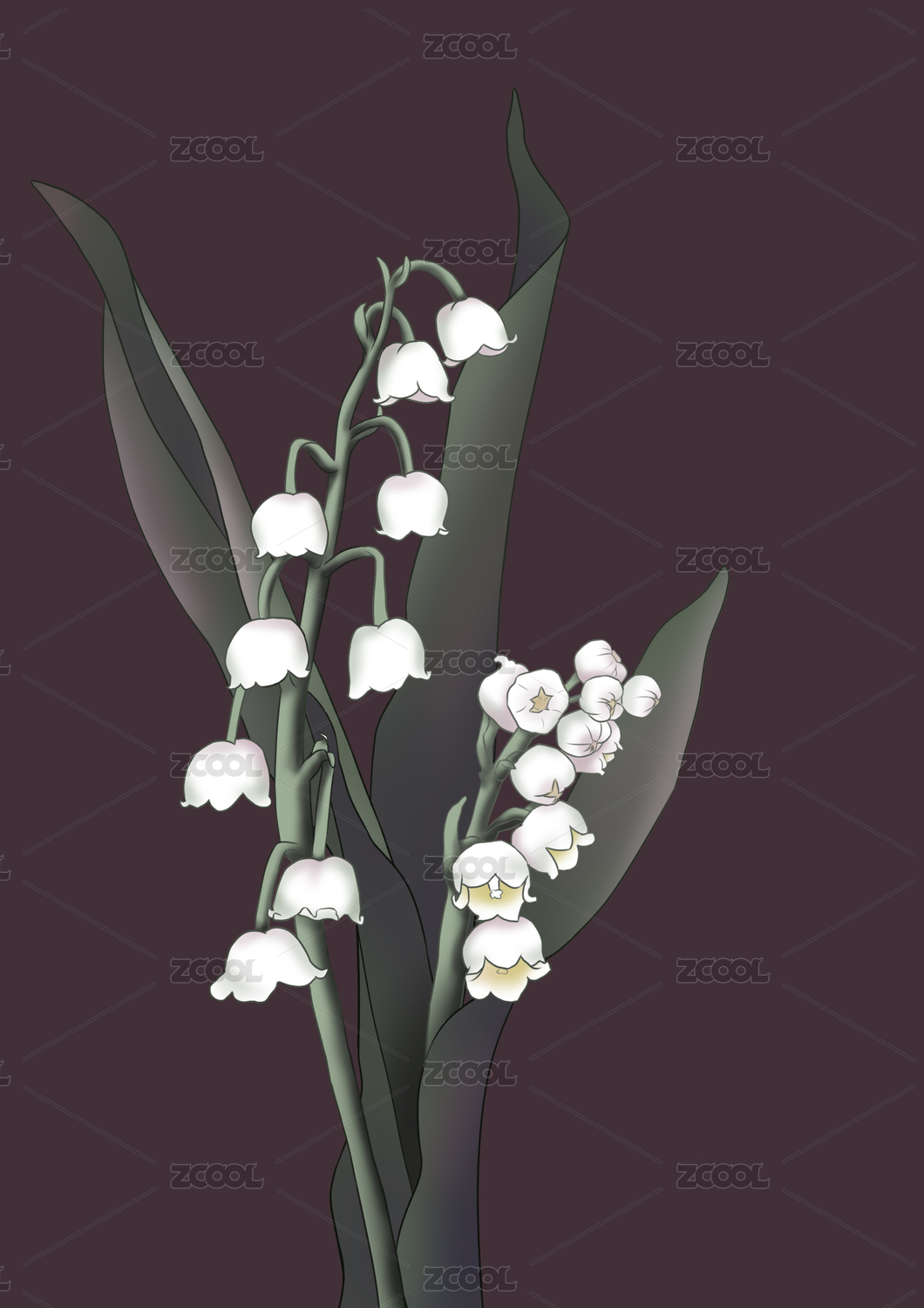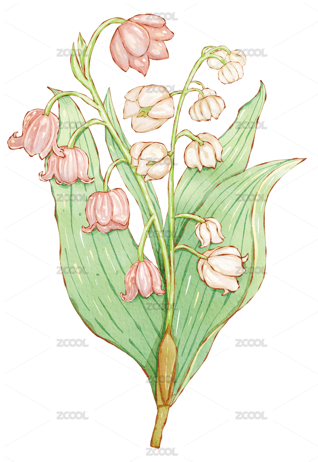 花卉 植物 鈴蘭花 手繪高清矢量圖