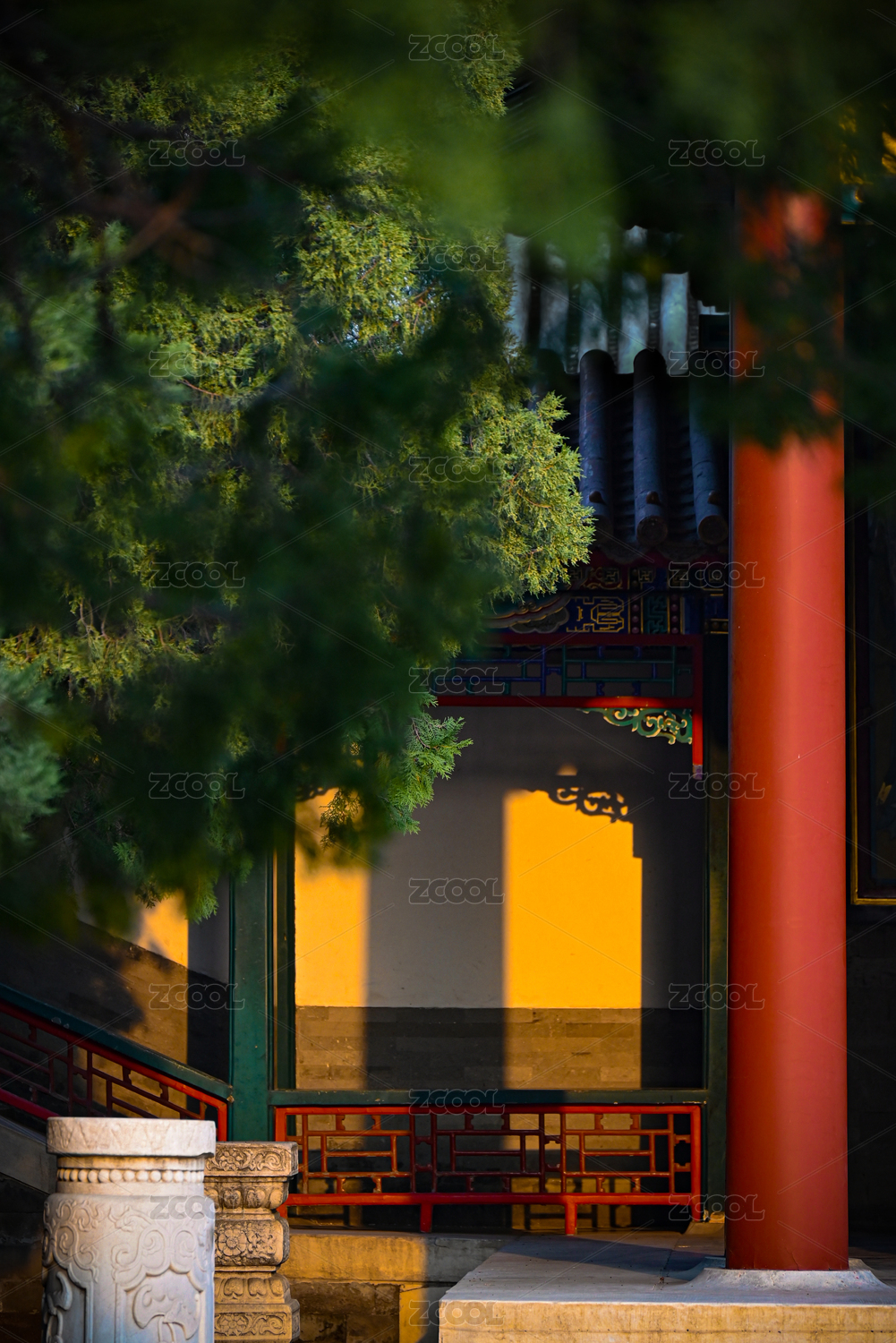 深秋的暖陽(yáng)斜照在北京頤和園佛香閣的庭院里
