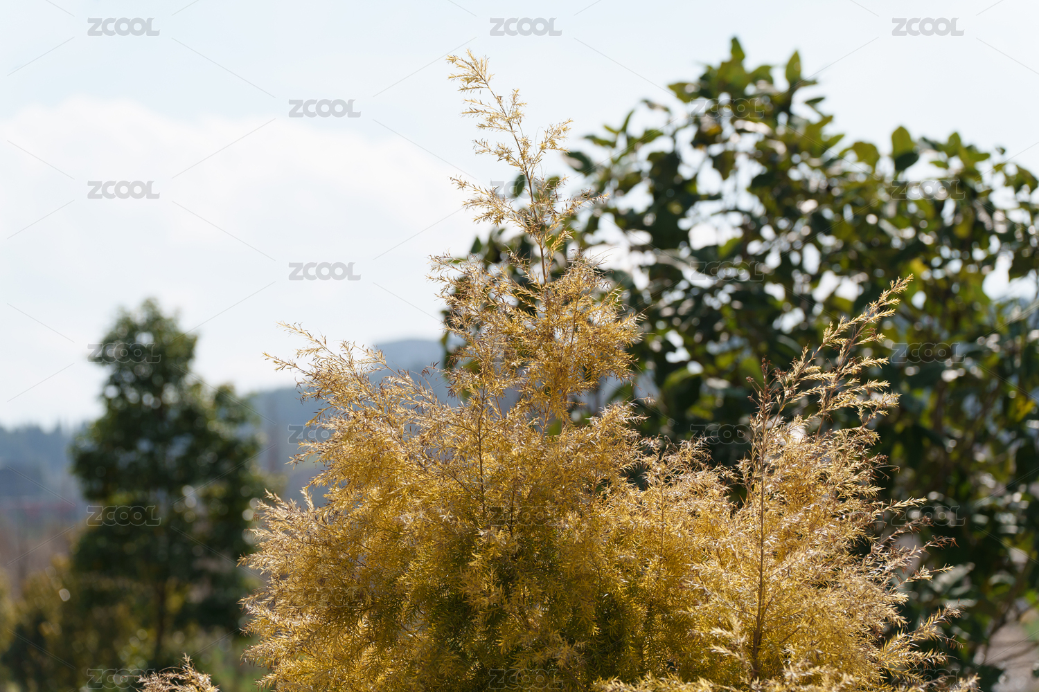 秋日暖陽(yáng)下的金黃色灌木