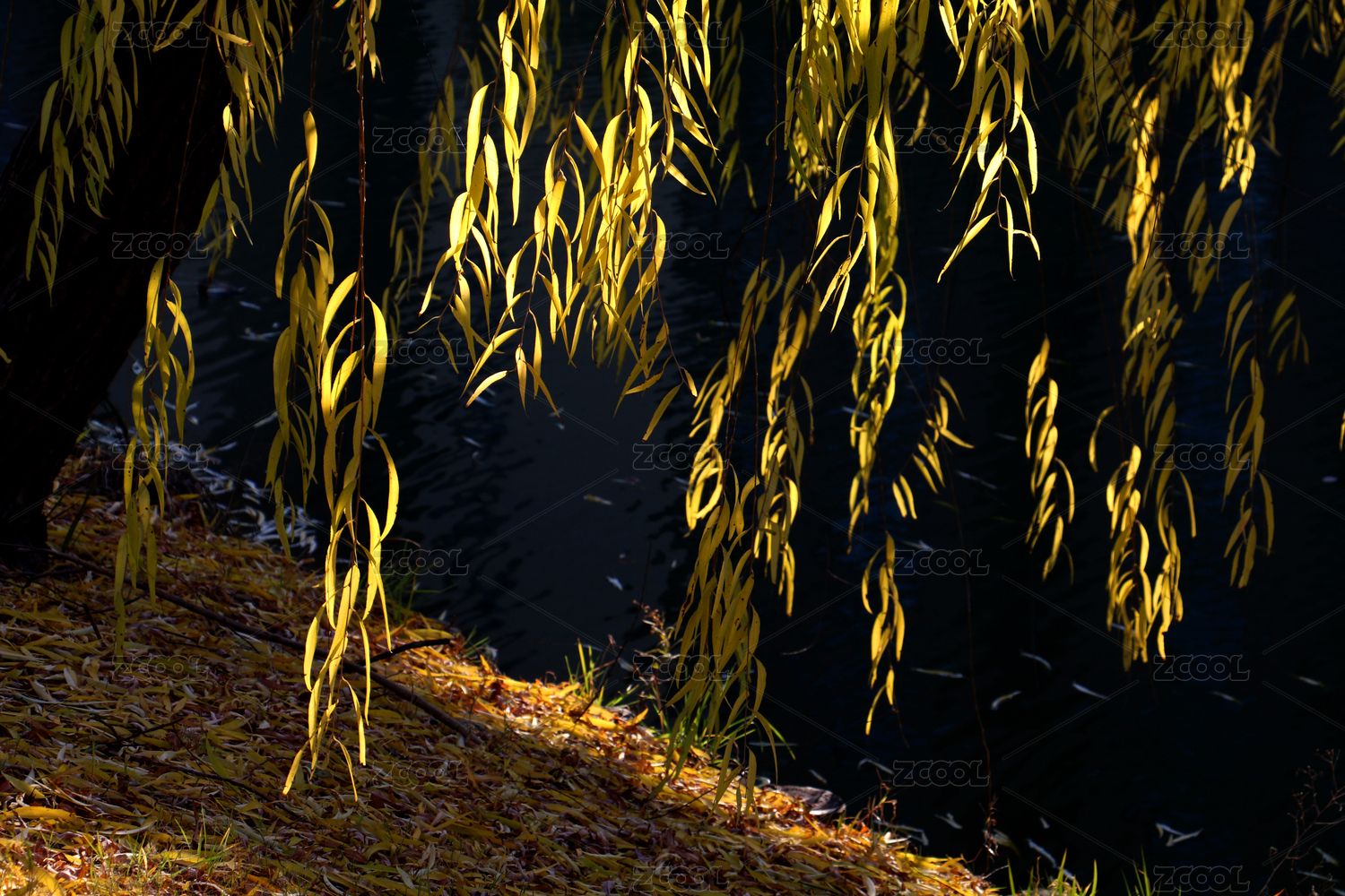 暖陽(yáng)柳影金葉舞