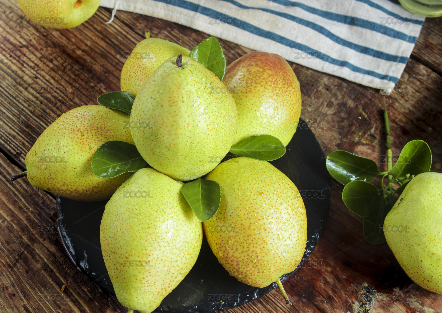 黑石板上放著一盤新疆庫(kù)爾勒香梨