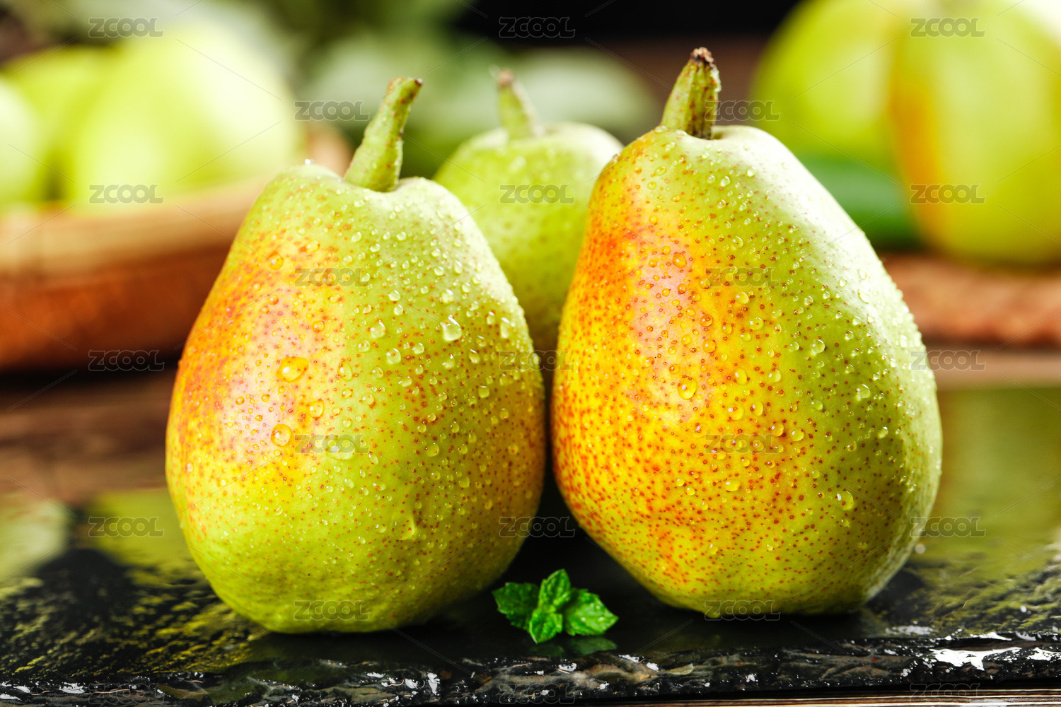 黑石板上放著三個(gè)完整的新疆庫(kù)爾勒香梨