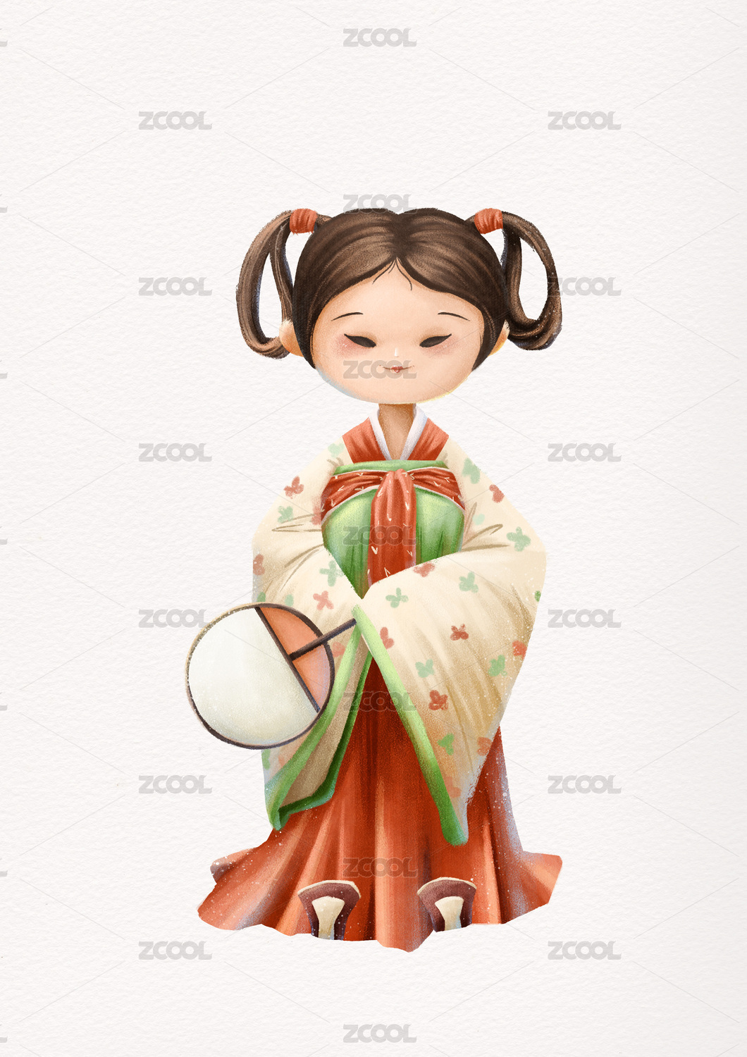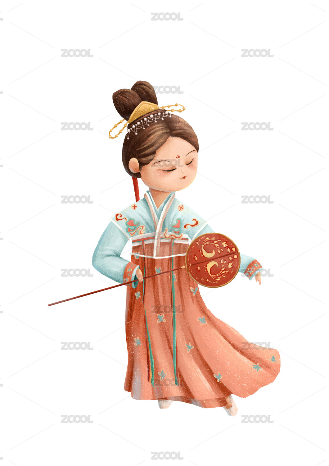 一個(gè)拿扇子的唐朝漢服女子仕女圖插畫(huà)
