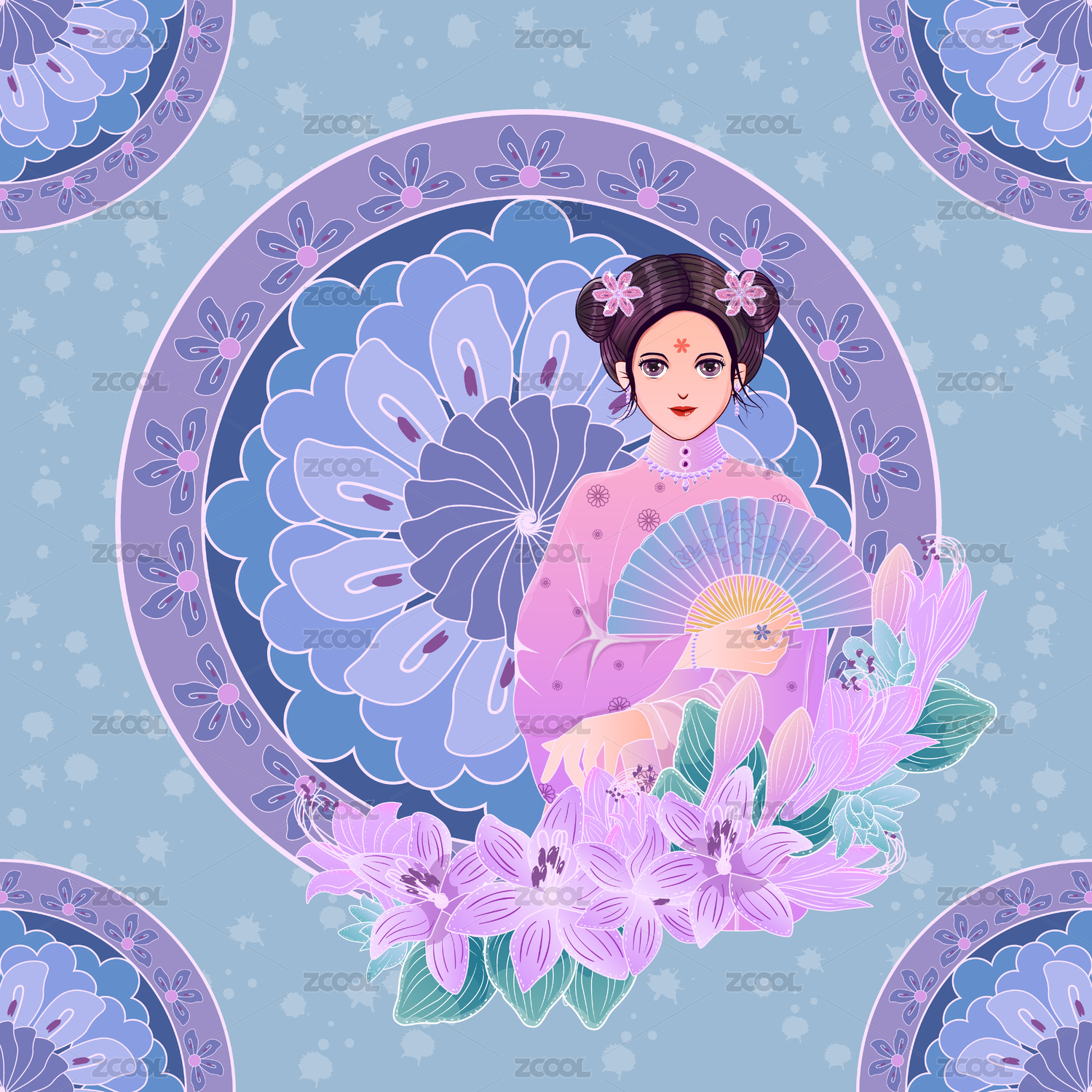 拿扇子的古風(fēng)女子插畫(huà)