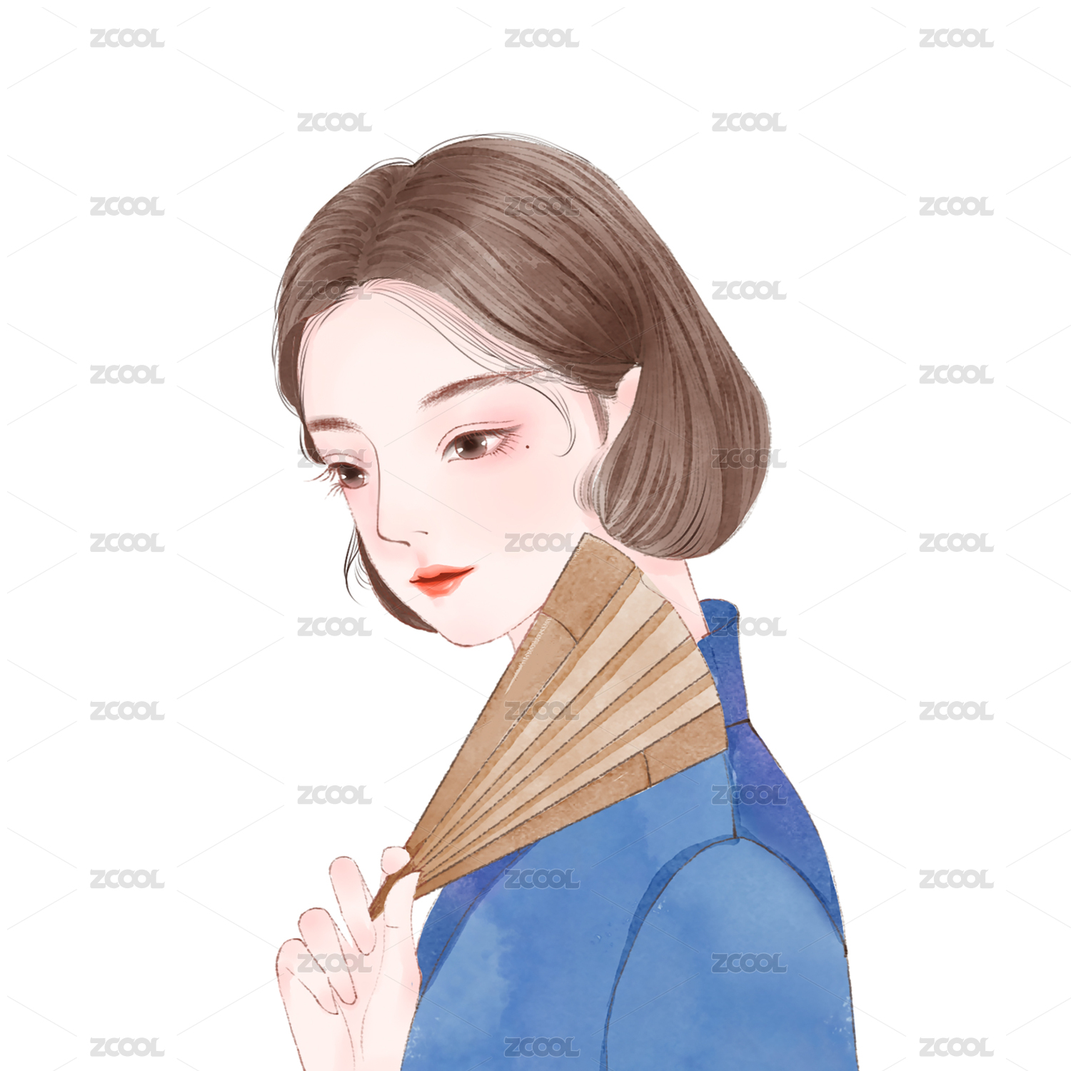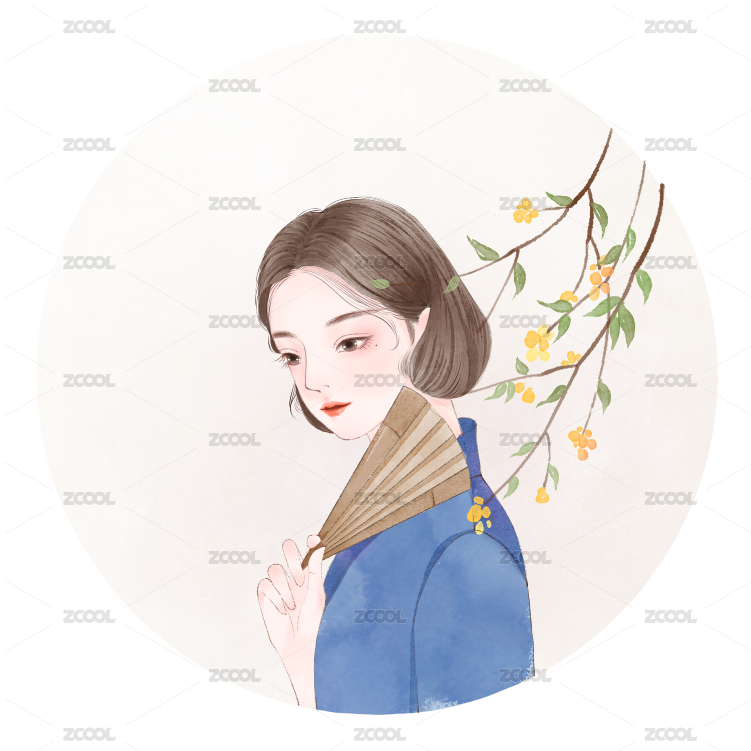 工筆民國(guó)風(fēng)美人拿扇子