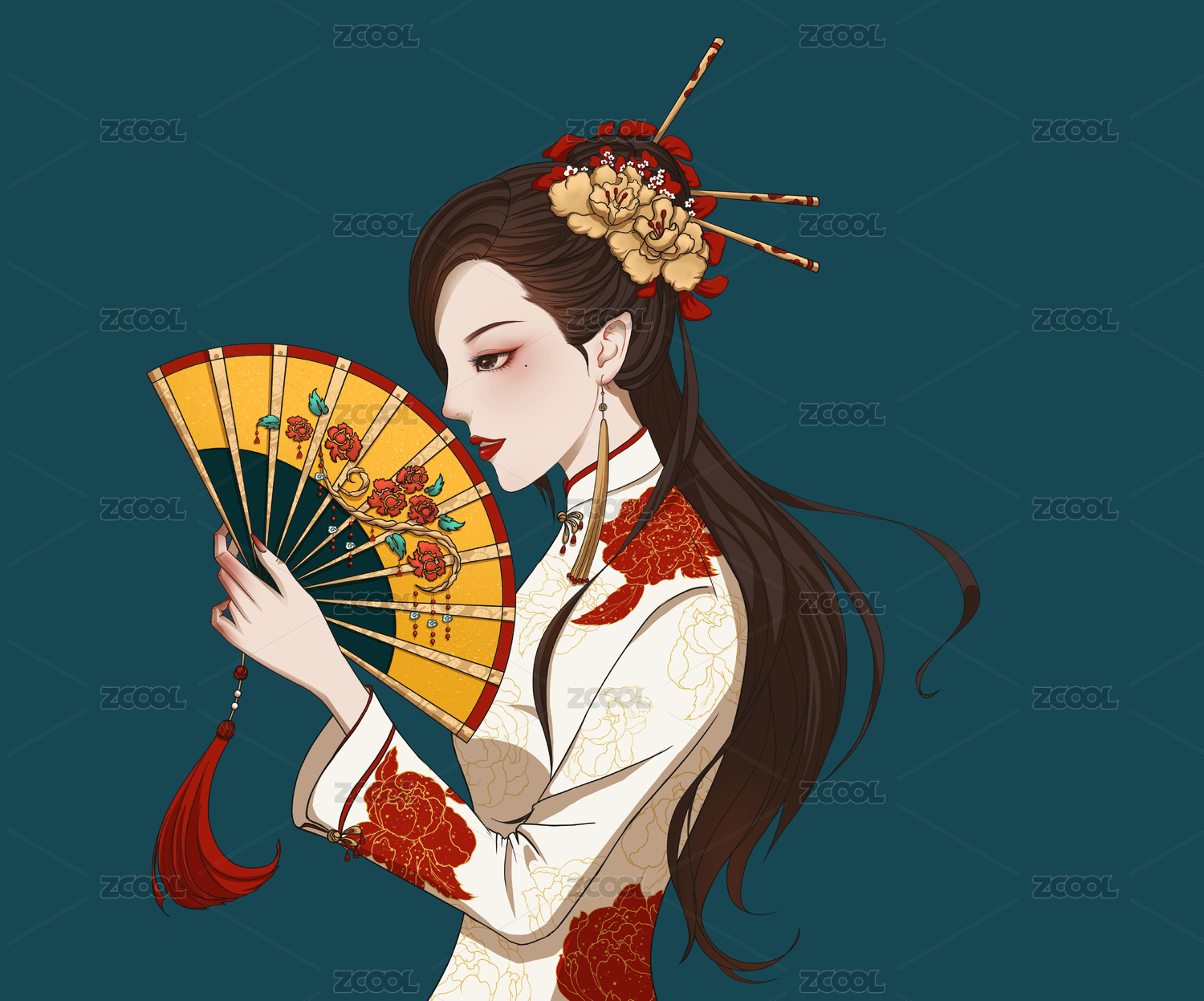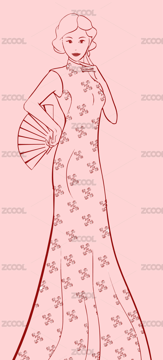 穿白色旗袍拿扇子的女人國(guó)潮插畫(huà)
