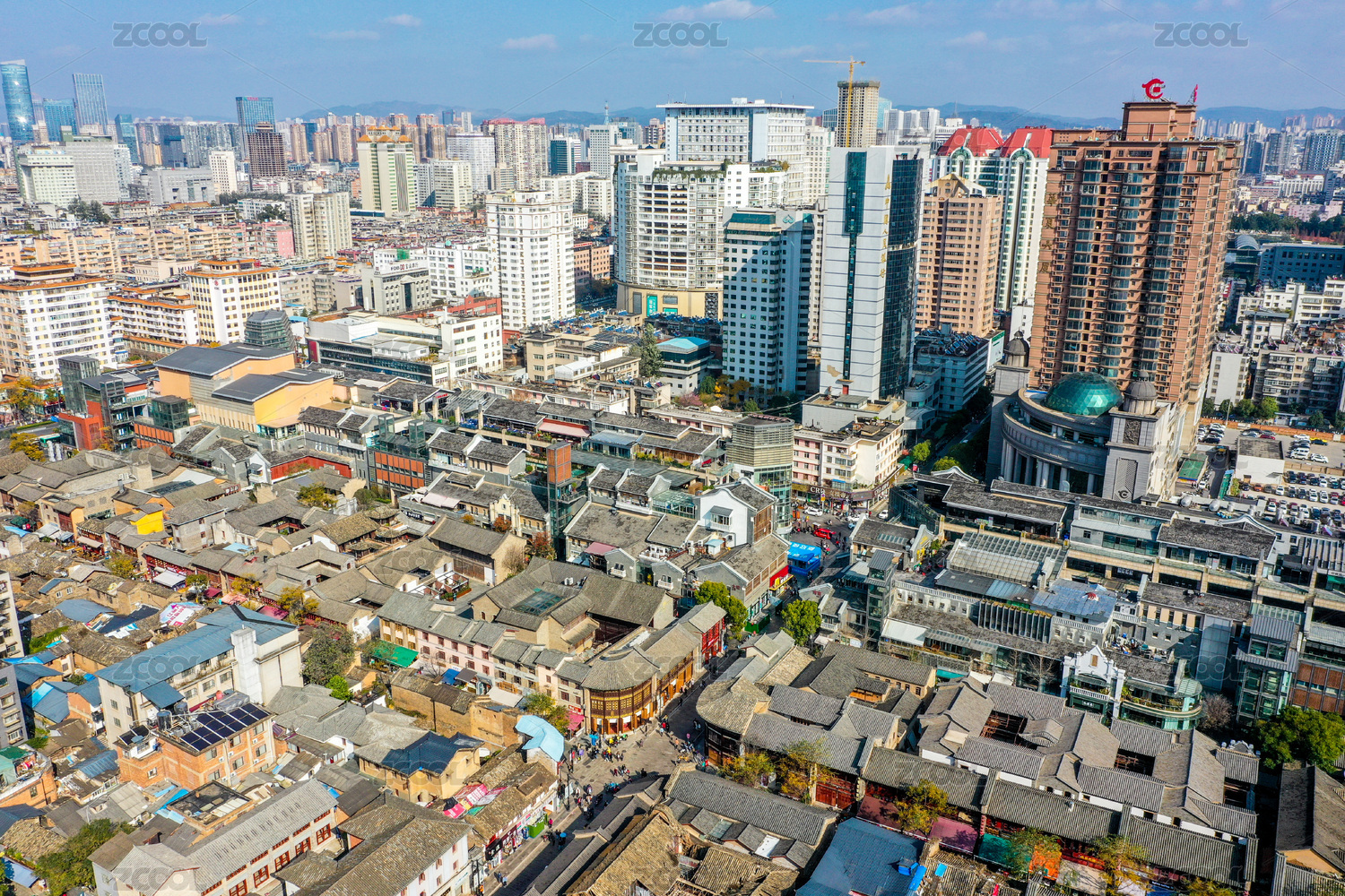 云南昆明老街城市建筑航拍風(fēng)光