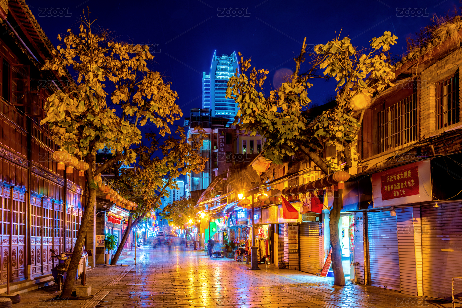 中國(guó)云南昆明老街夜景