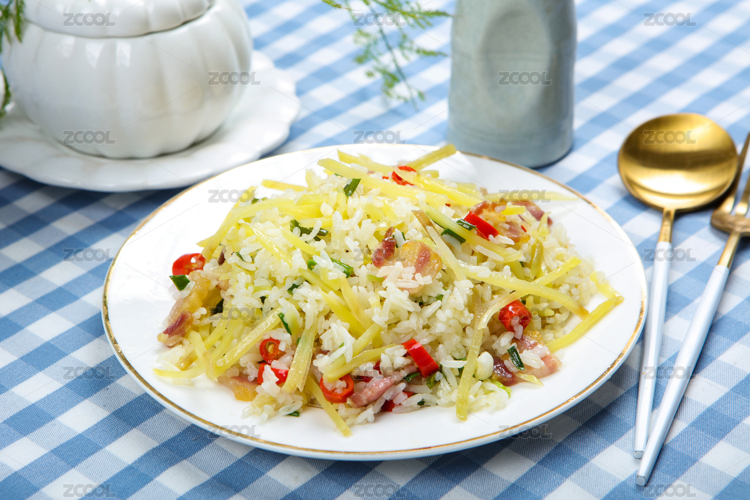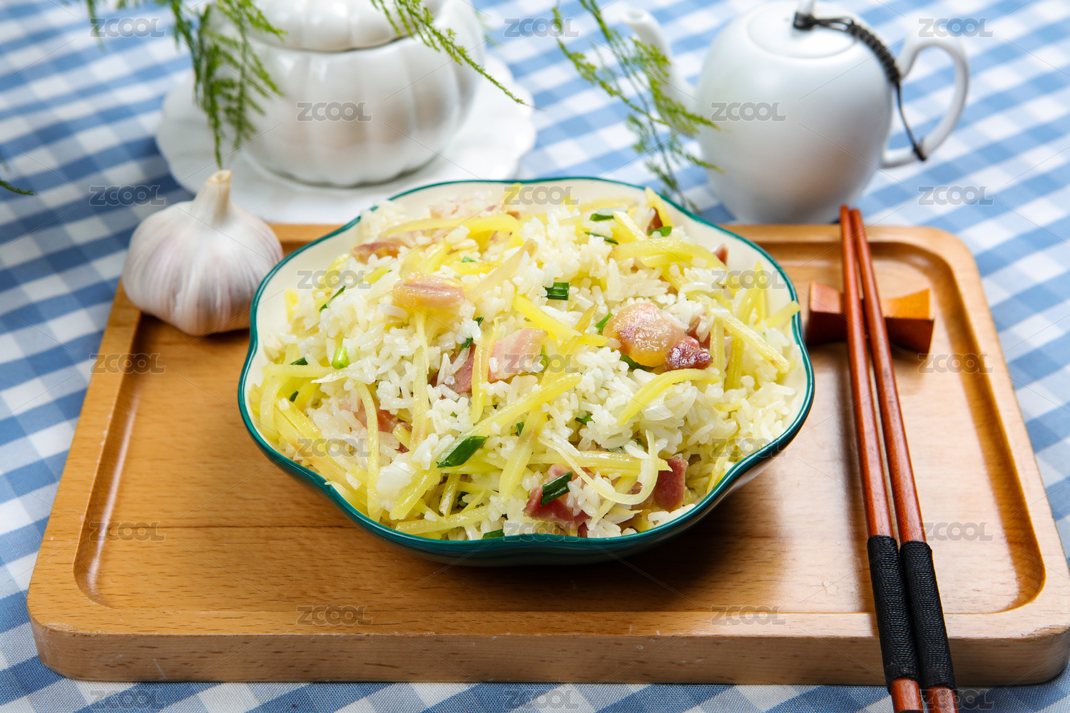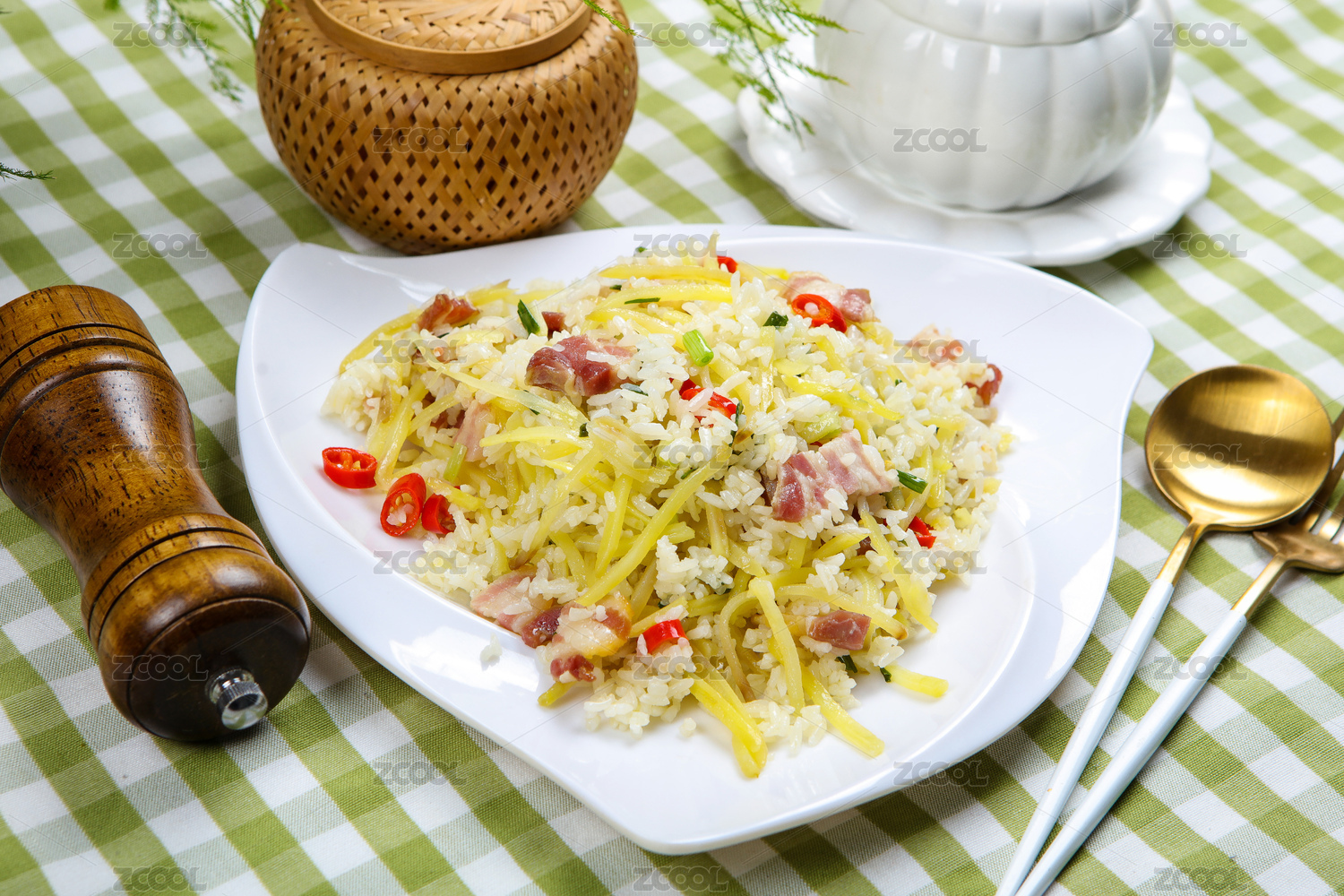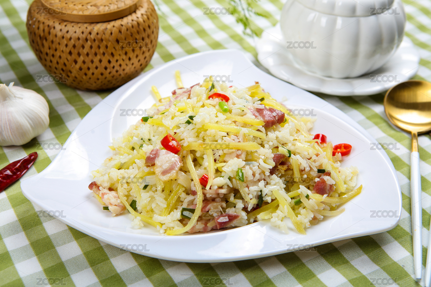 美食小吃臘肉土豆絲炒米飯