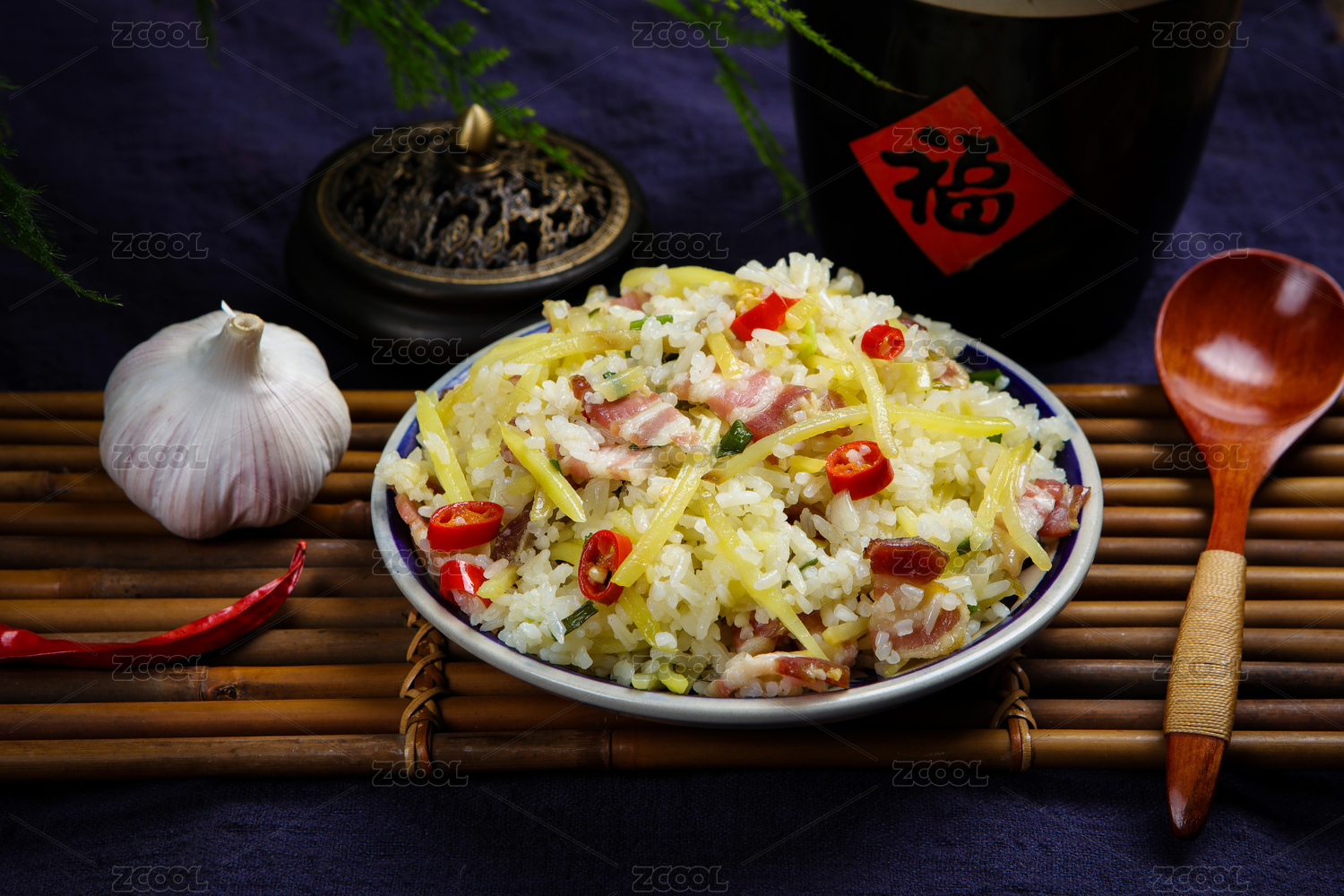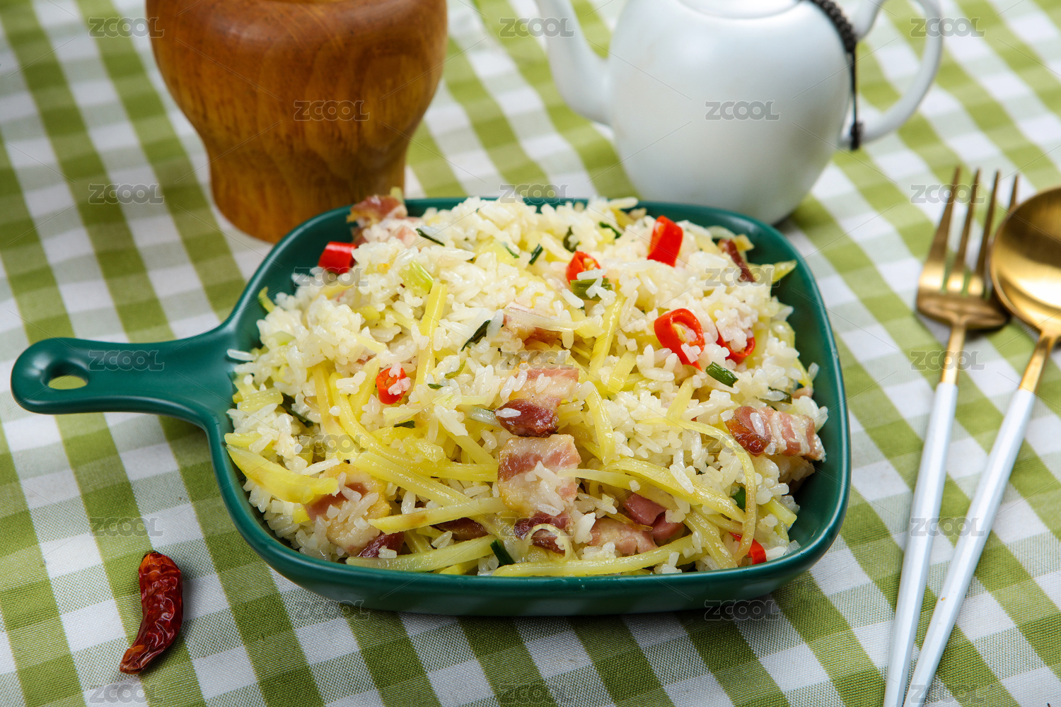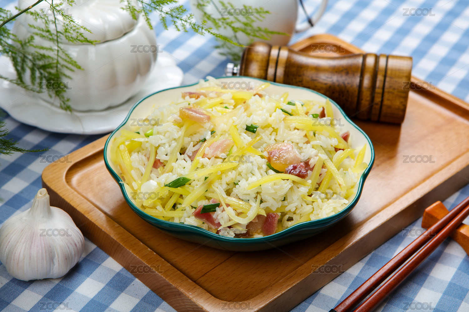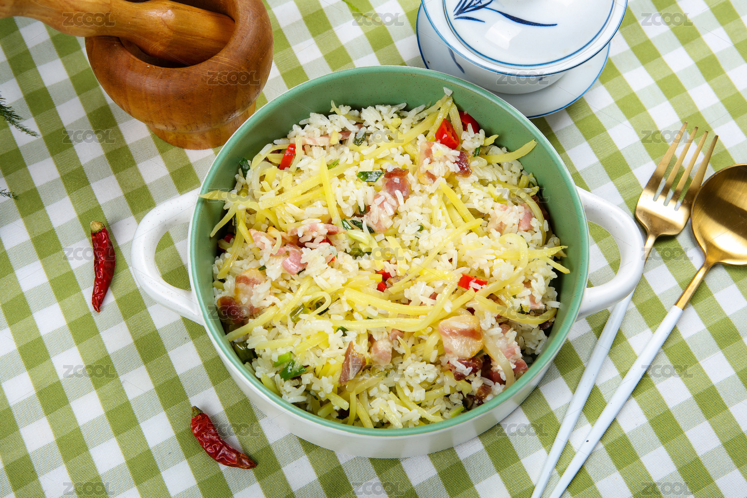 美食小吃臘肉土豆絲炒米飯