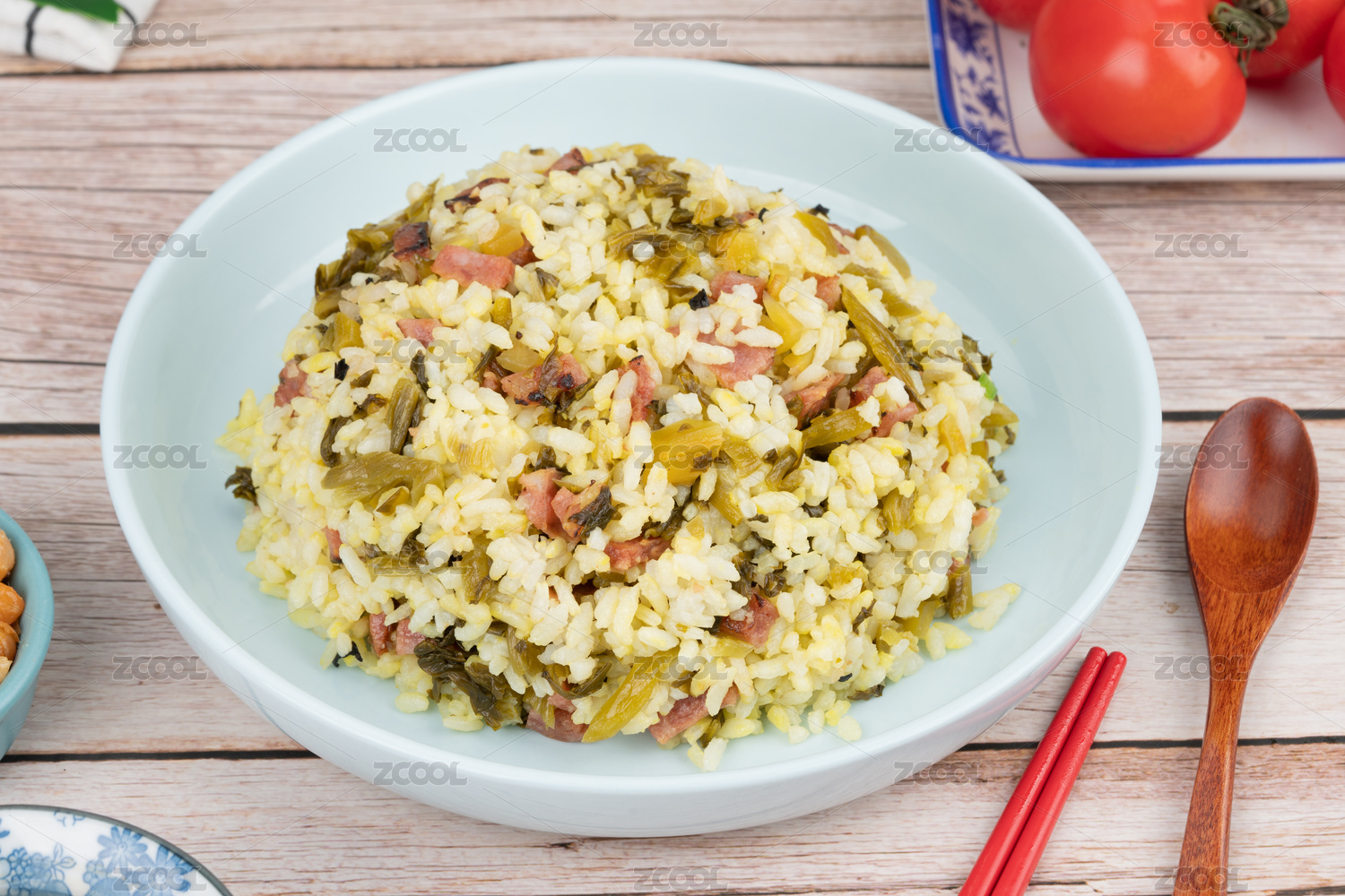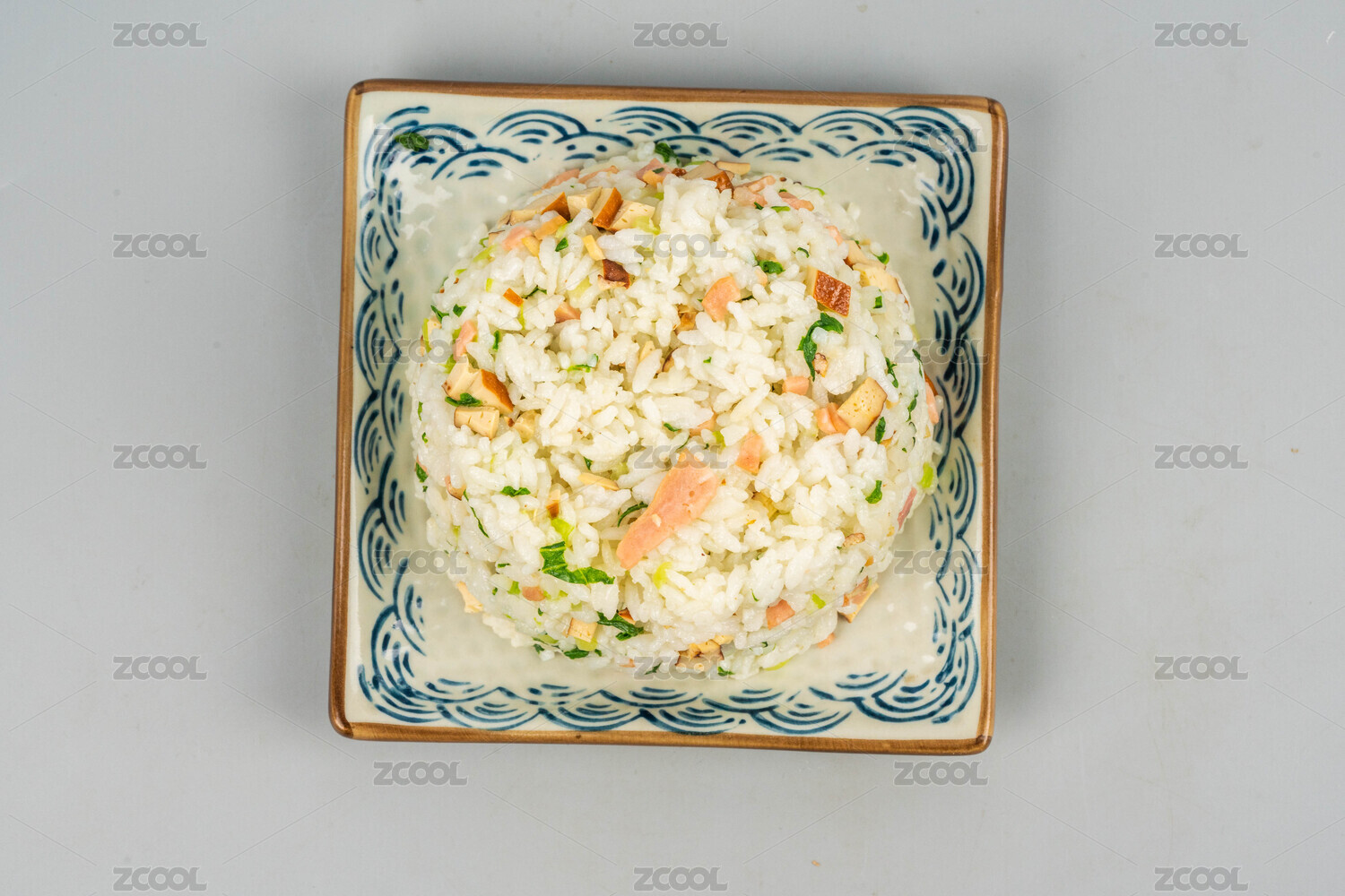 盛在盤中的青菜炒米飯
