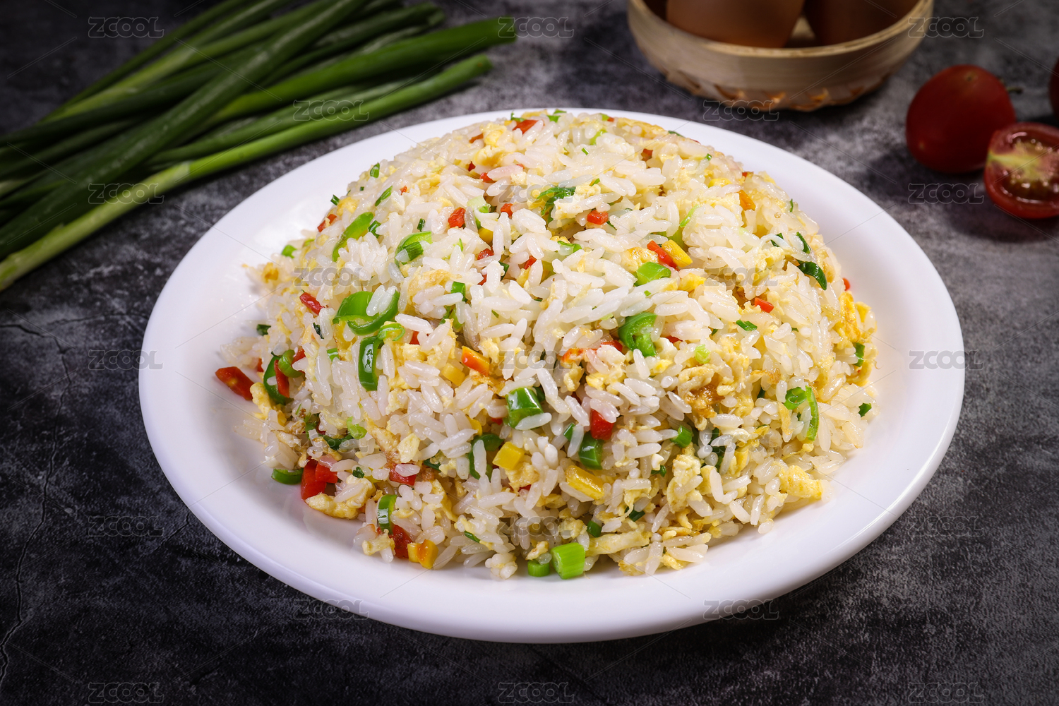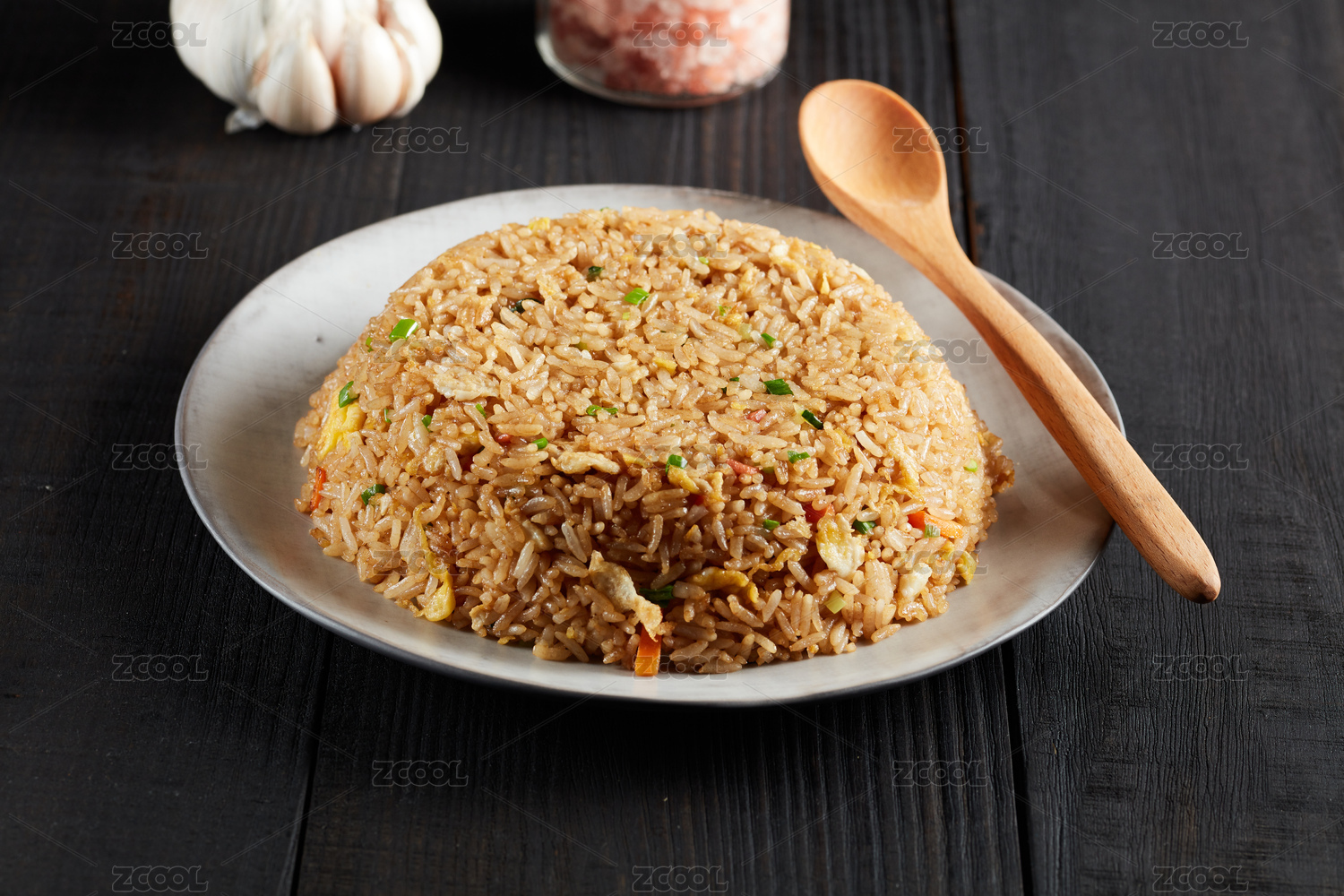 深色背景上的蛋炒飯