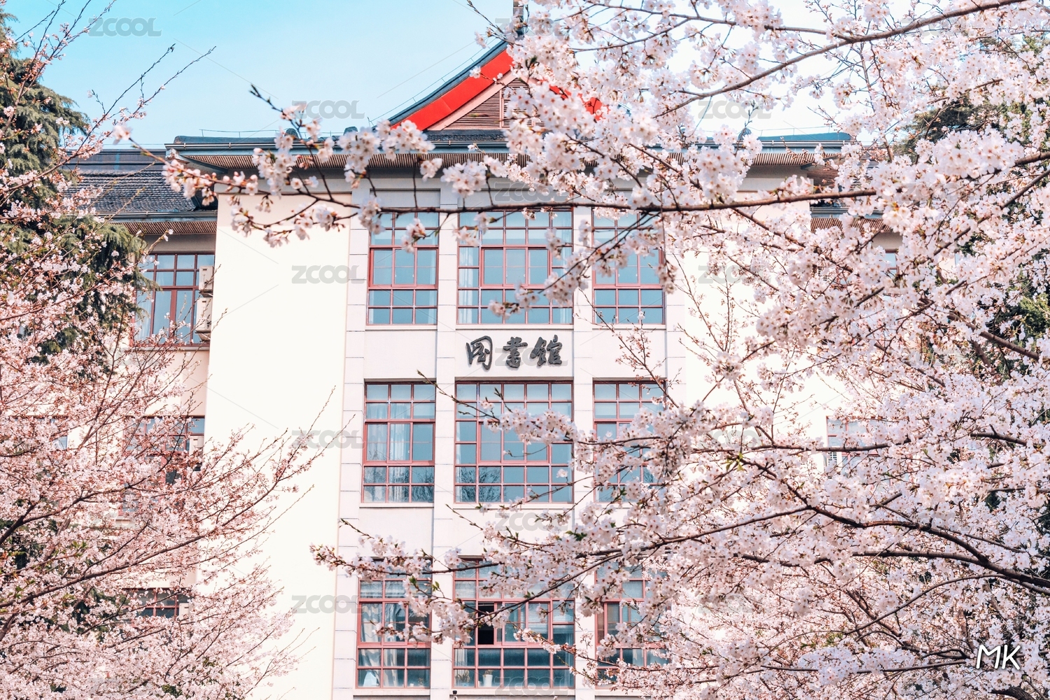 中國江蘇省南京市南京林業(yè)大學櫻花叢中的圖書館