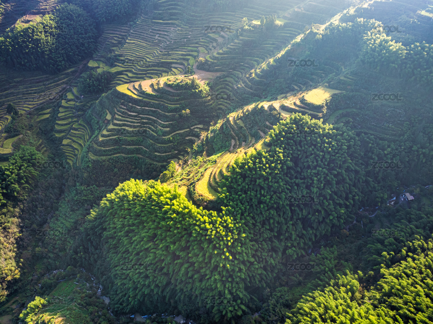 航拍云和白銀谷梯田翠綠竹海林業(yè)景觀