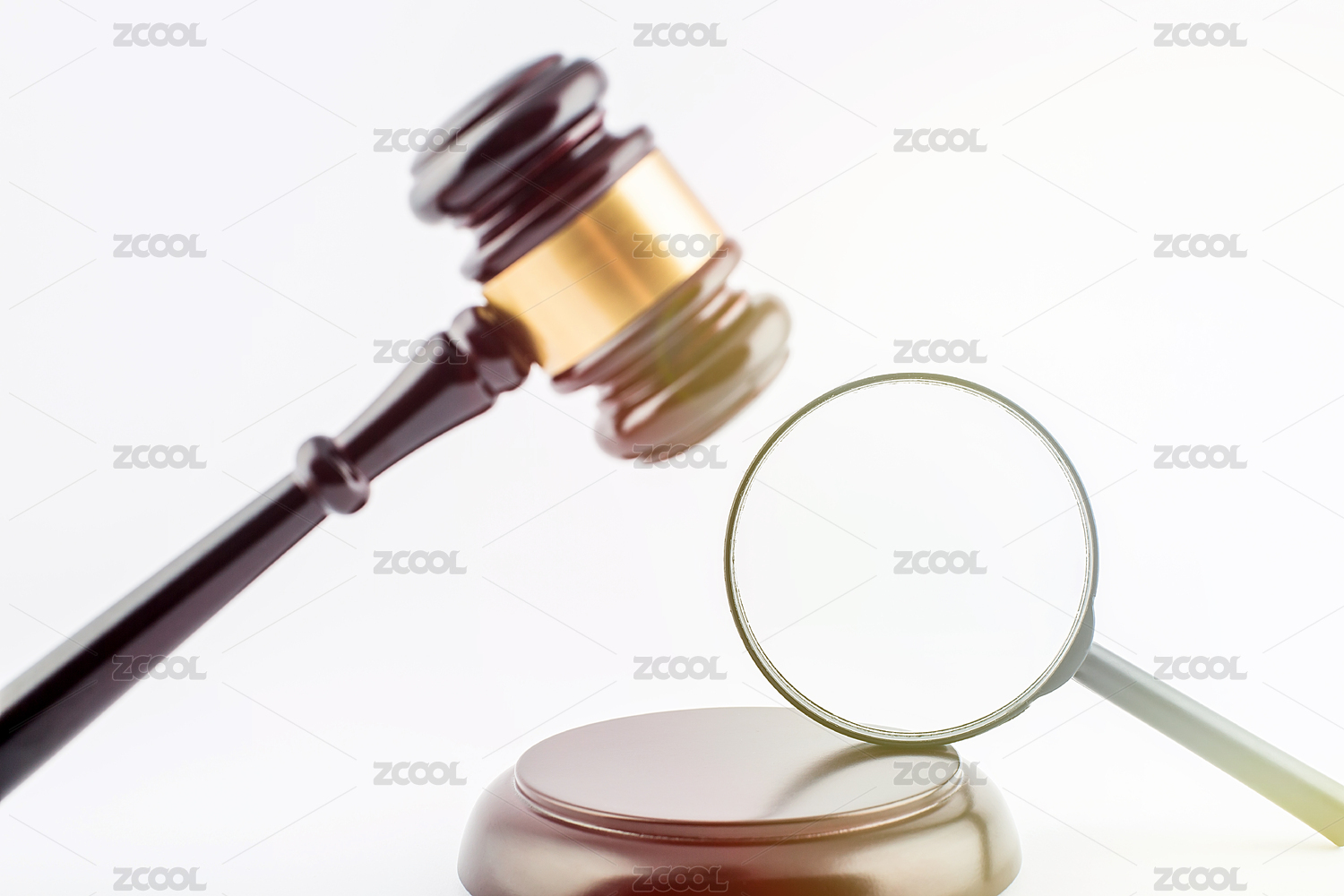 法槌和放大鏡,法律權(quán)威和法官依法公正概念