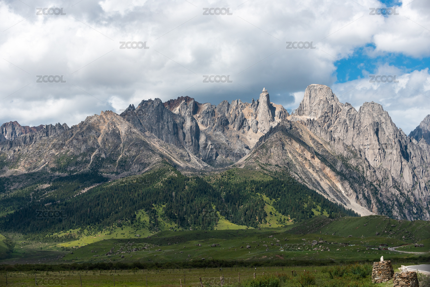 中國四川甘孜巴塘措普溝扎金甲博神山風(fēng)光