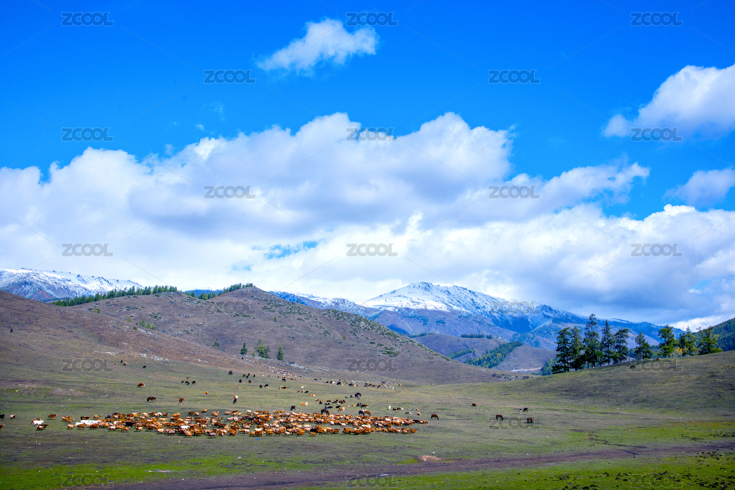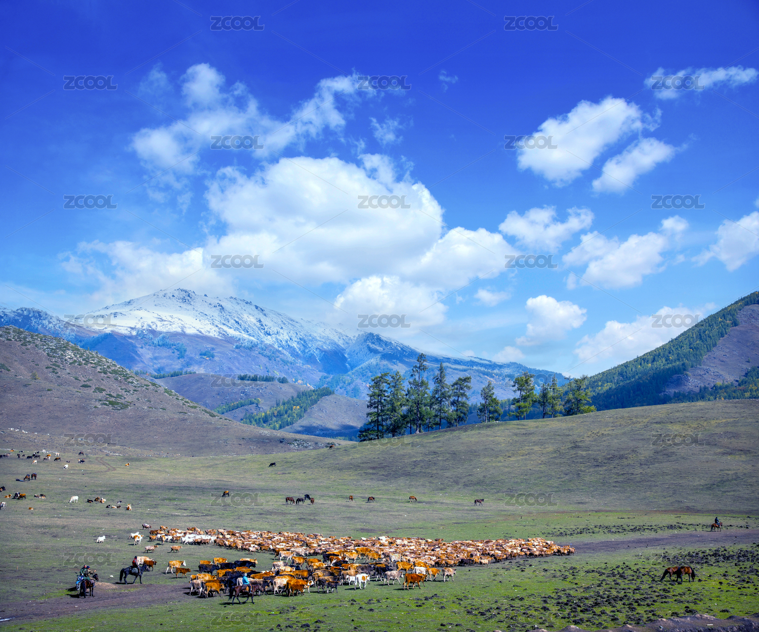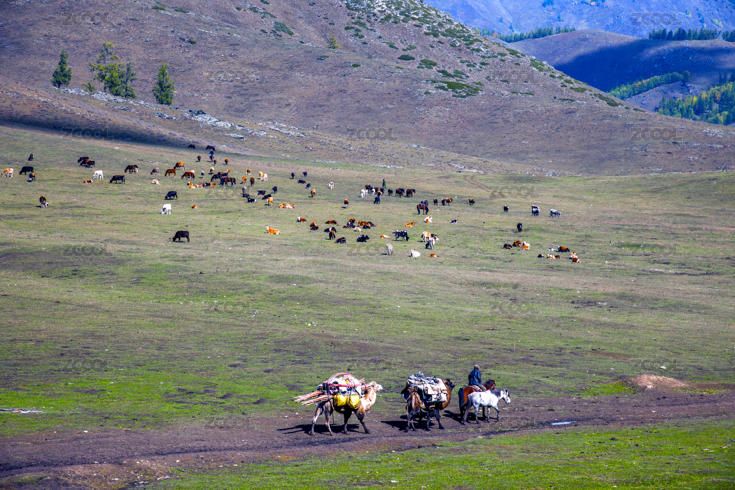 中國(guó)新疆布爾津縣賈登峪鎮(zhèn)牧民牛羊大遷徙-