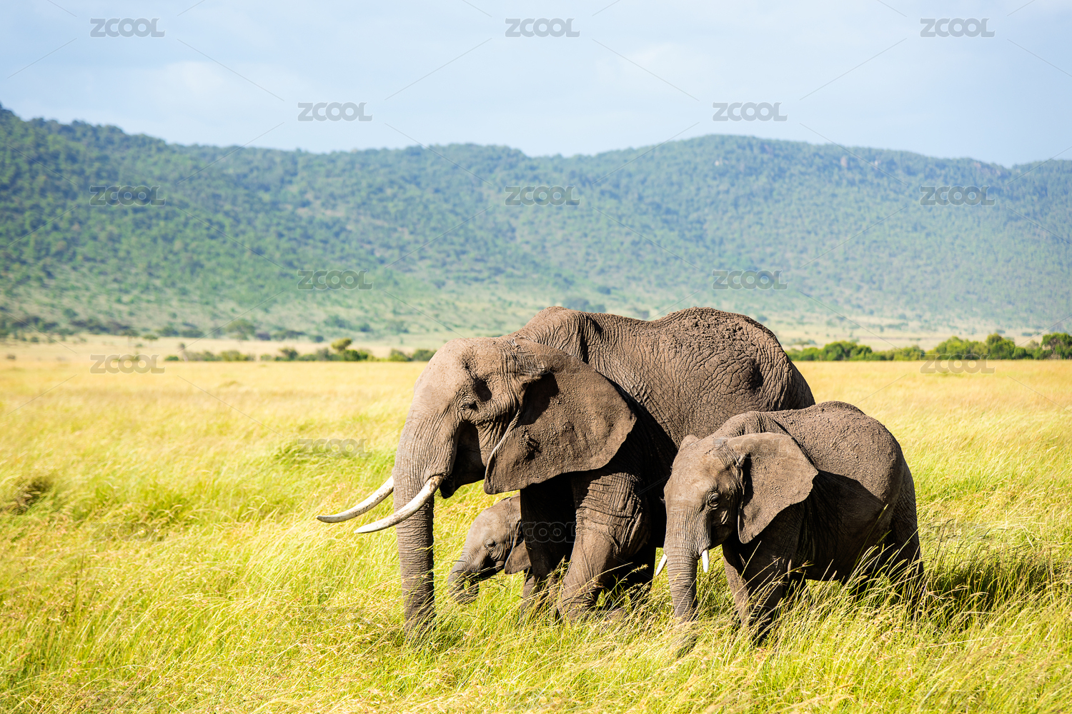 非洲大草原上正在遷徙的大象一家