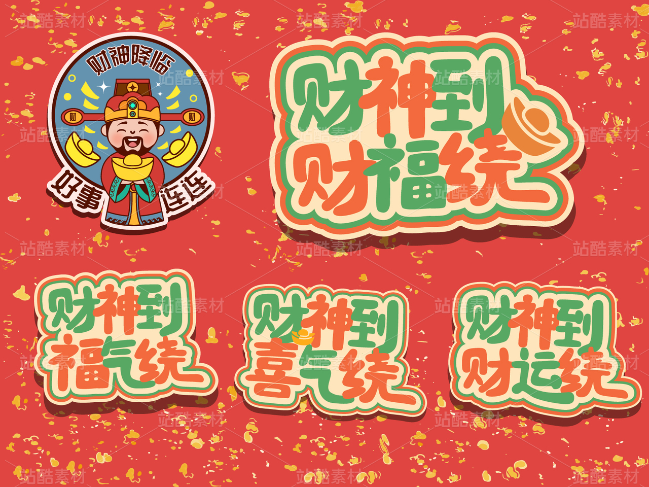 財(cái)神到祝福文案矢量圖