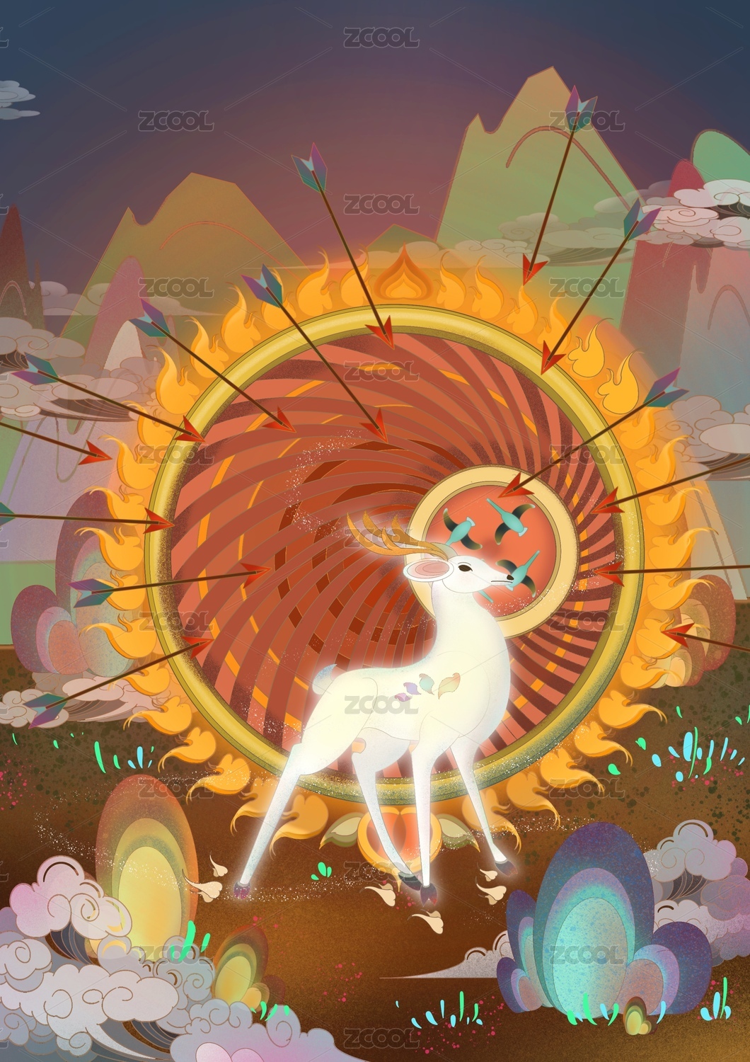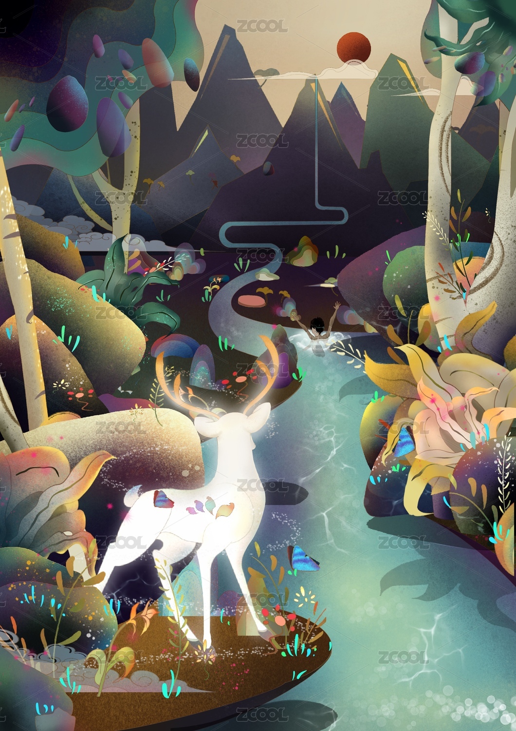 中國傳統(tǒng)文化九色鹿故事原創(chuàng)插圖