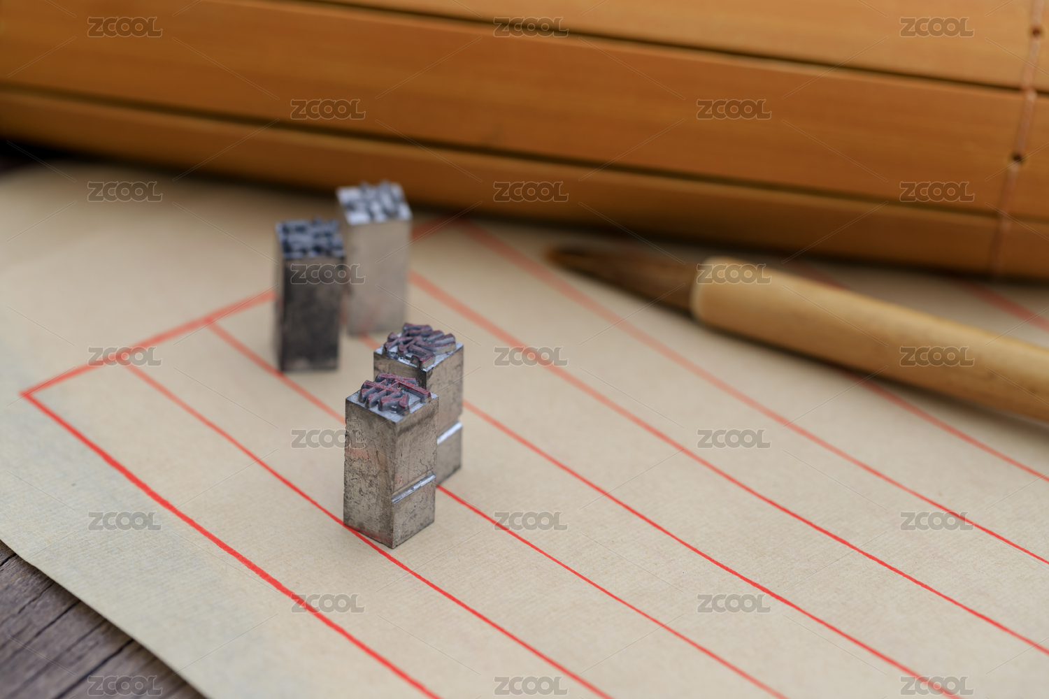 信箋紙上的活字印刷金屬塊特寫