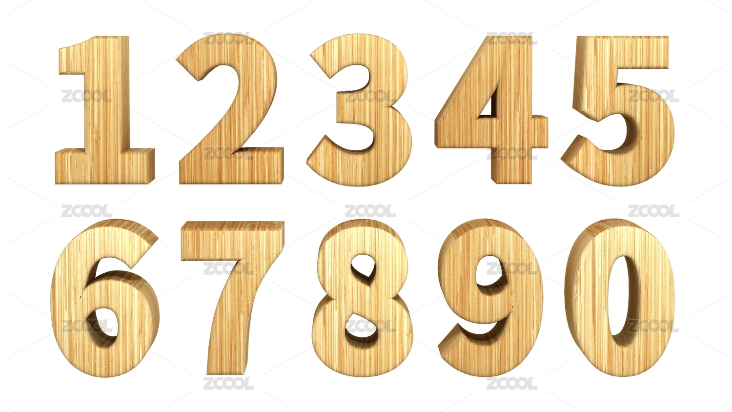 白色背景上10個木紋材質(zhì)的阿拉伯?dāng)?shù)字