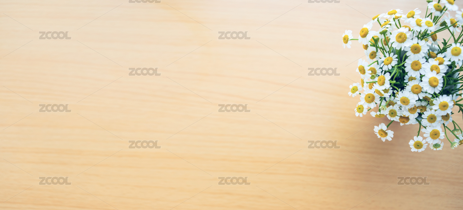干凈的木紋桌面上一瓶小白菊花放