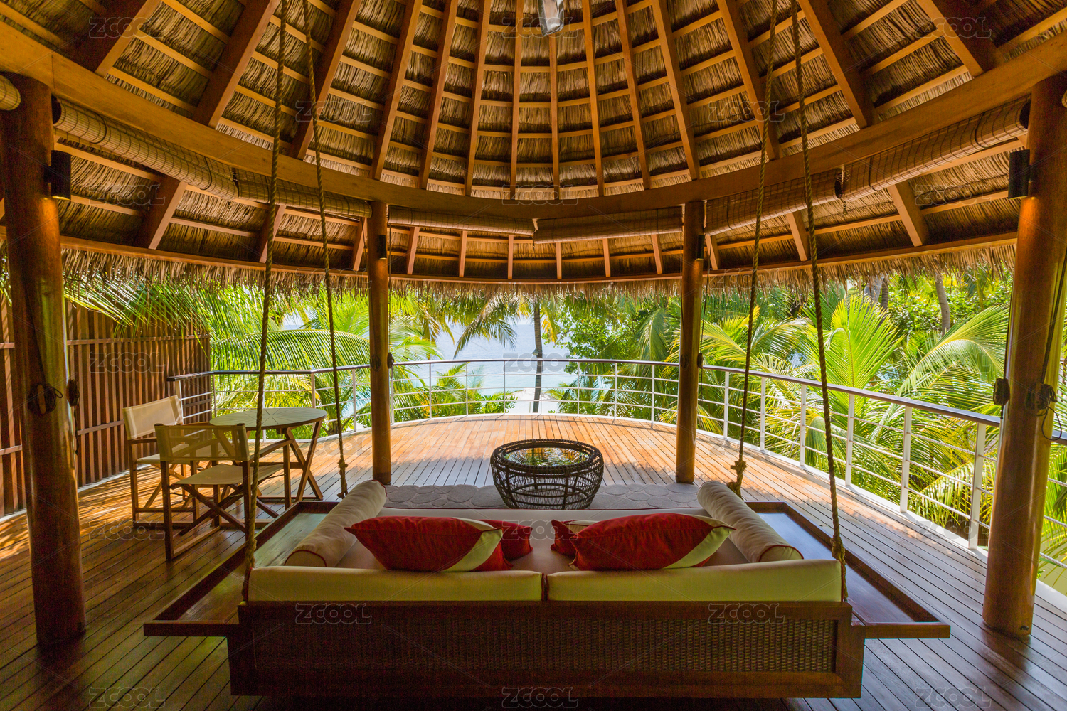 馬爾代夫?qū)庫(kù)o島酒店房間的閣樓遠(yuǎn)眺大海