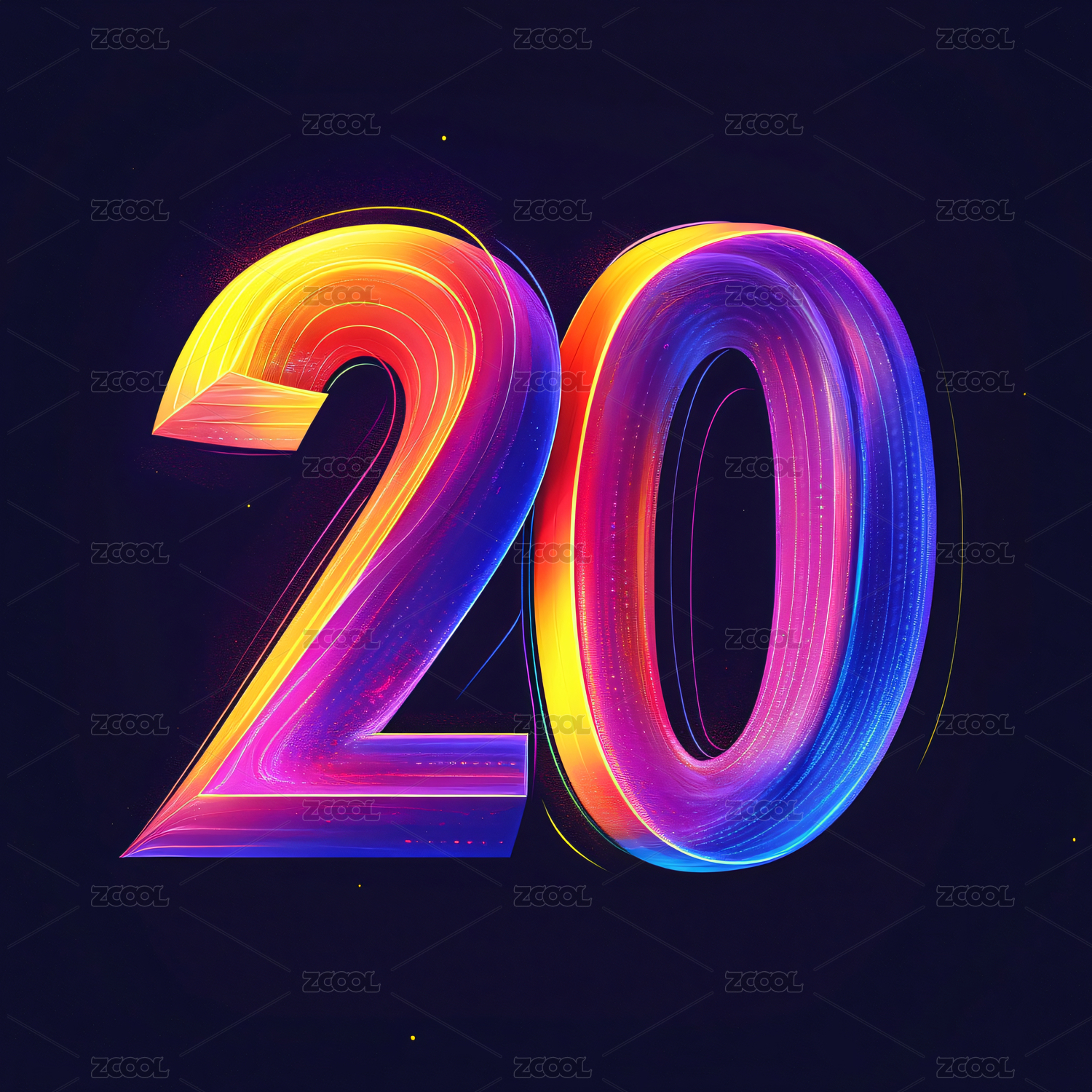 炫彩數(shù)字20 立體字霓虹發(fā)光彩虹字
