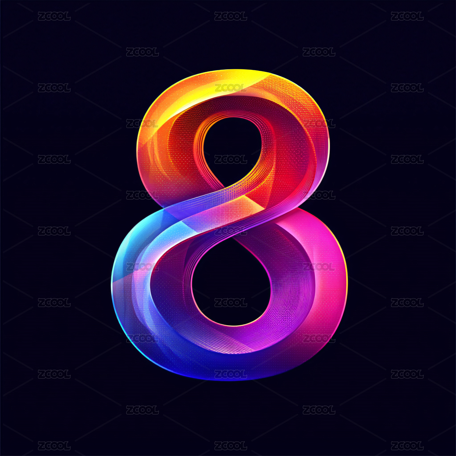 炫彩數(shù)字8 立體字霓虹發(fā)光彩虹字